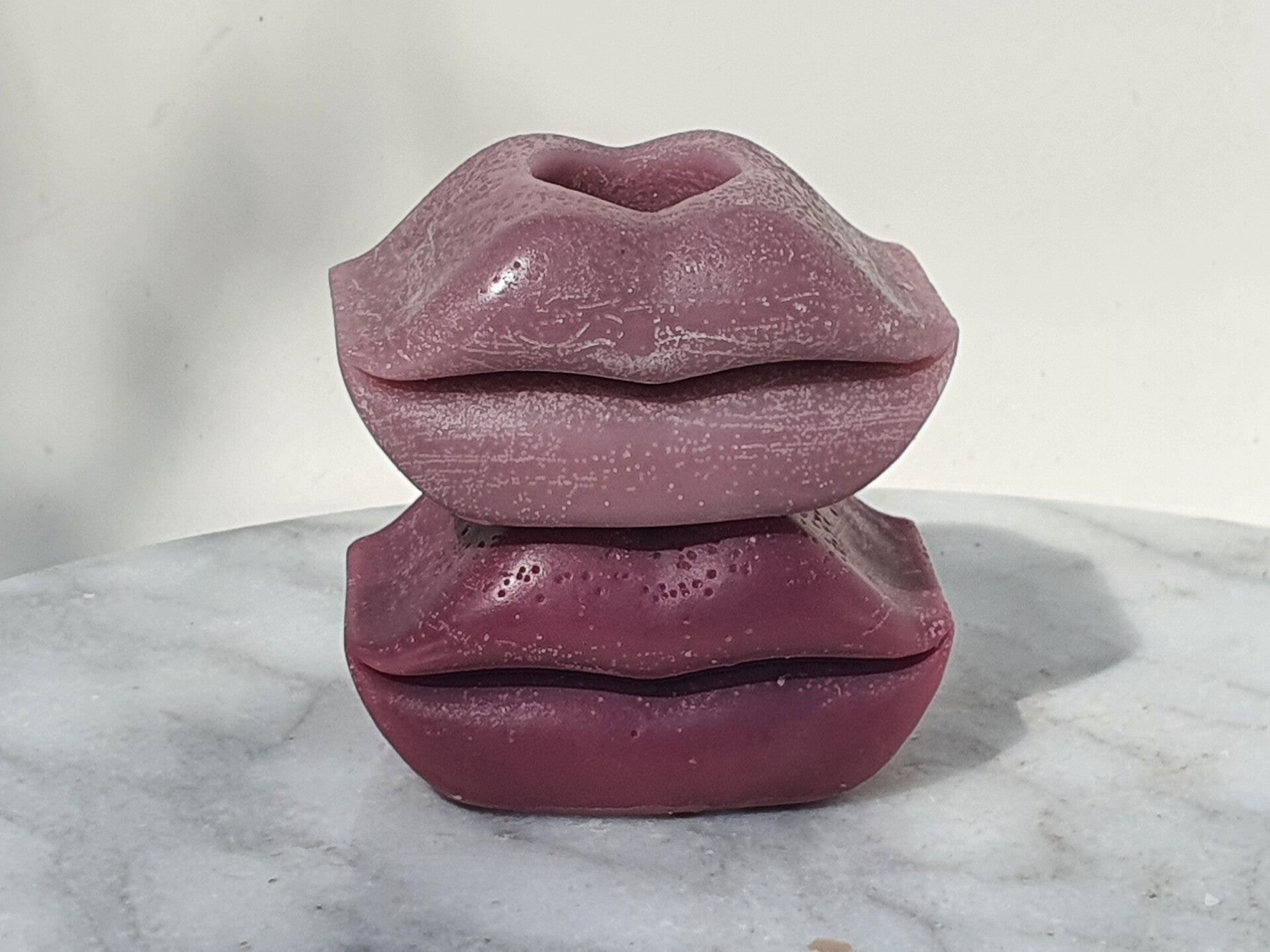 Unieke kandelaar in de vorm van een mondje. De voor- én de achterkant zijn gelijk.
