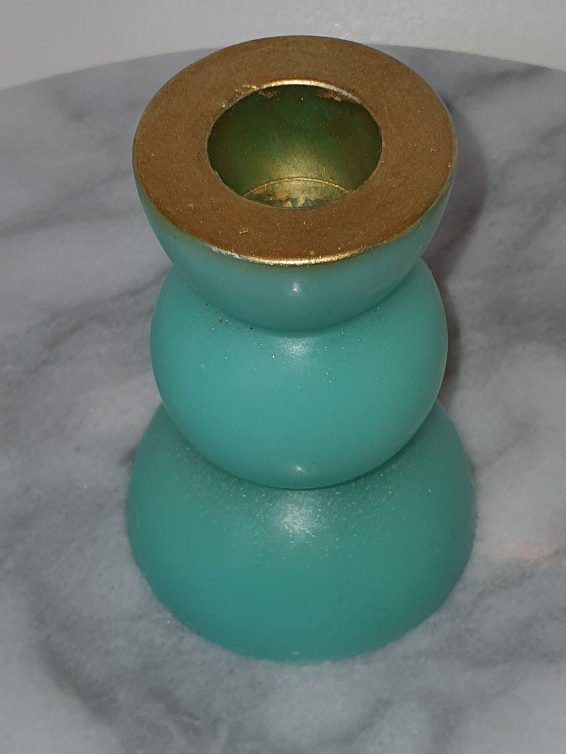 Prachtige kandelaar gemaakt van kaars met een halve bol aan de onderkant en een kleinere bol in het midden. Hij is geschikt voor een dinerkaars met een diameter van 2,2 centimeter.