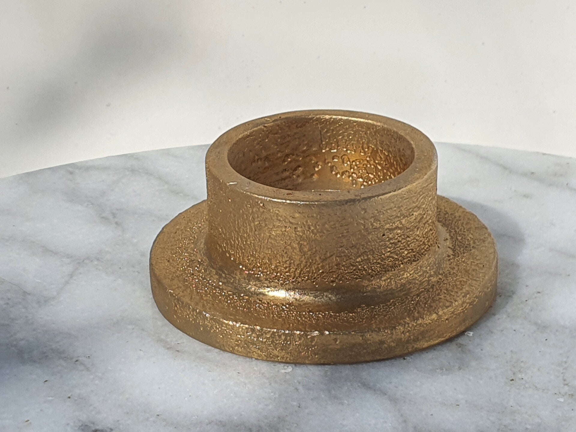 Handgemaakte kandelaar van Jesmonite voor een kaars met een diameter van 4 centimeter. Er past ook een waxinelichtje in.