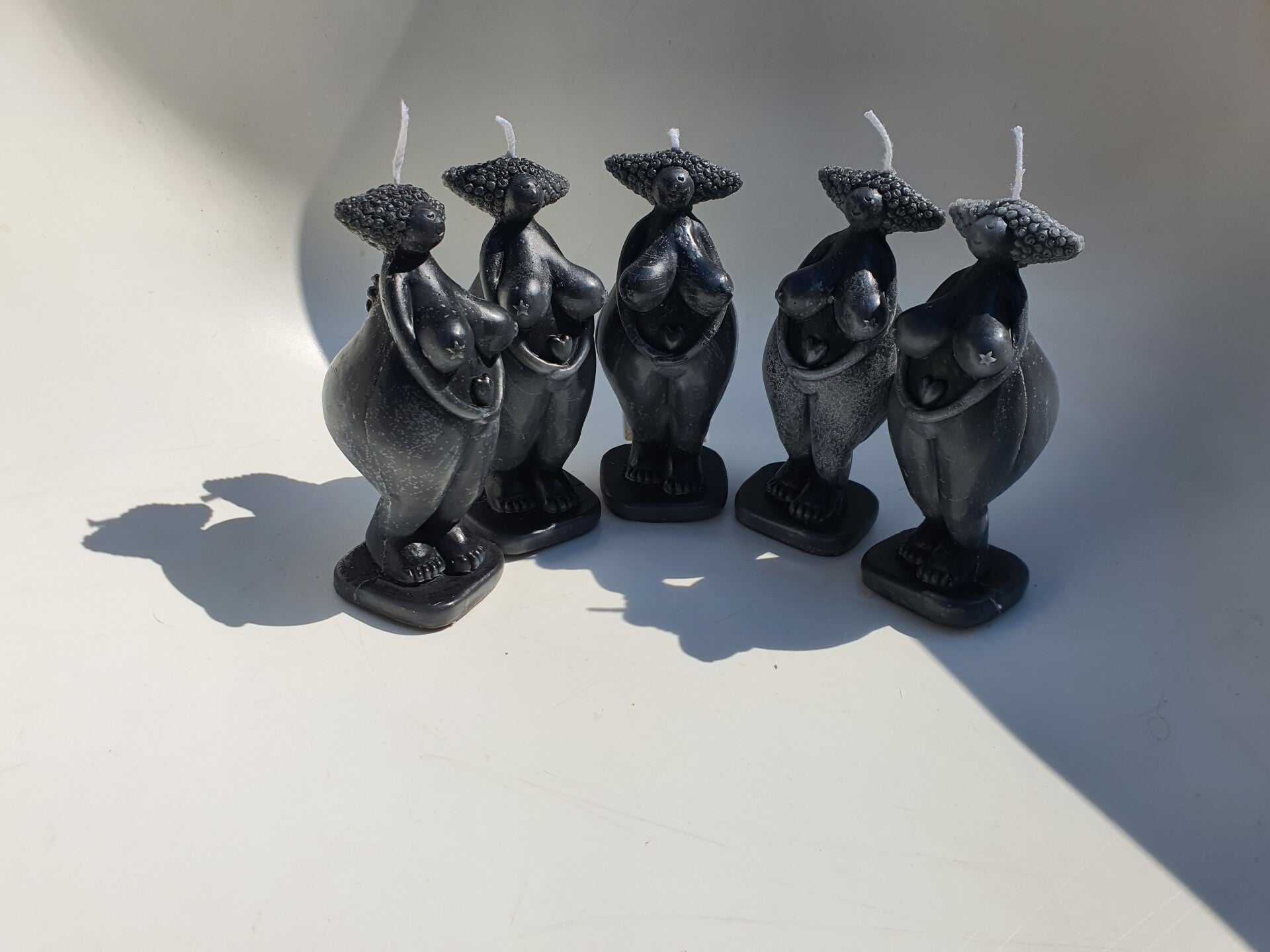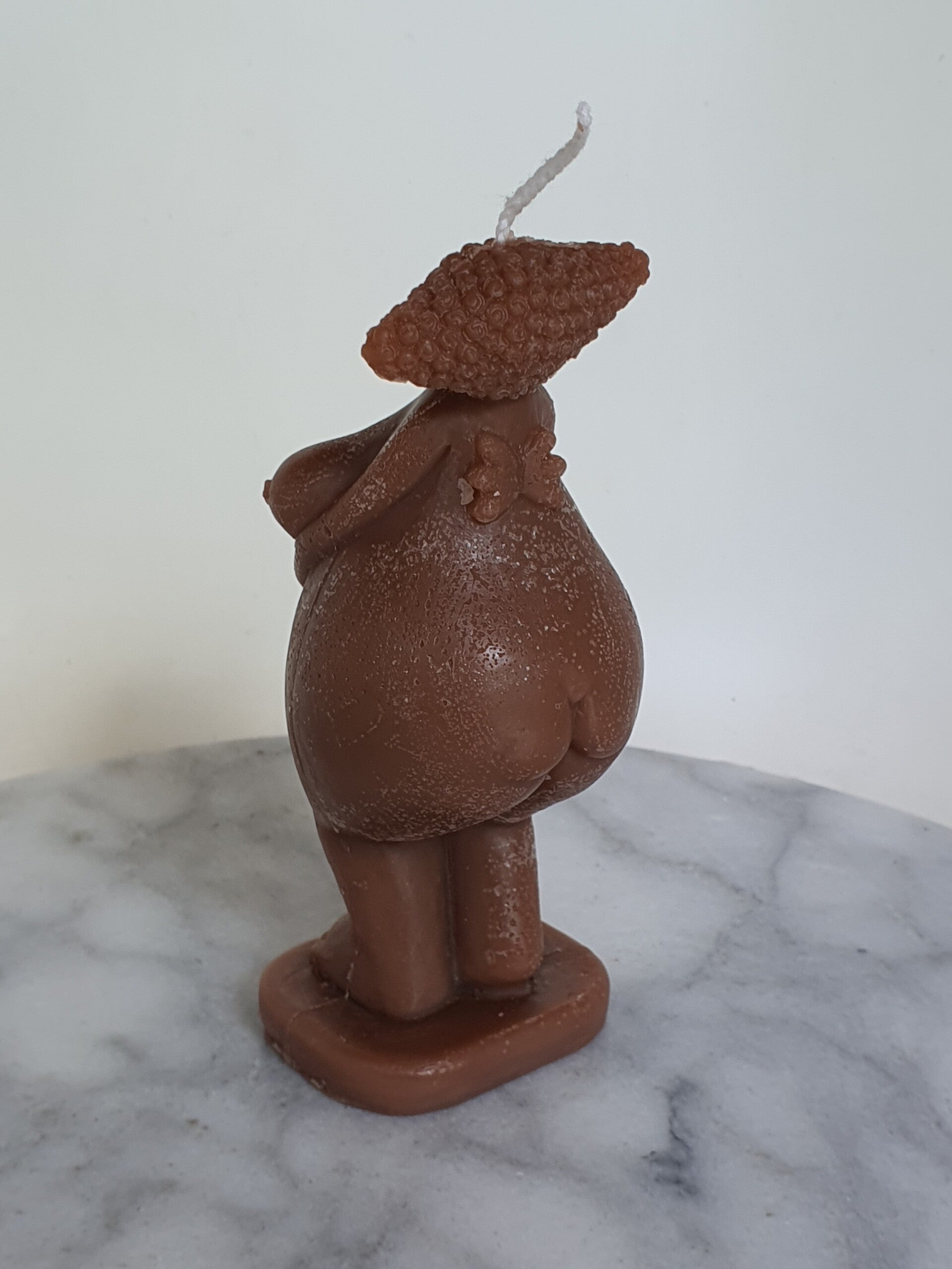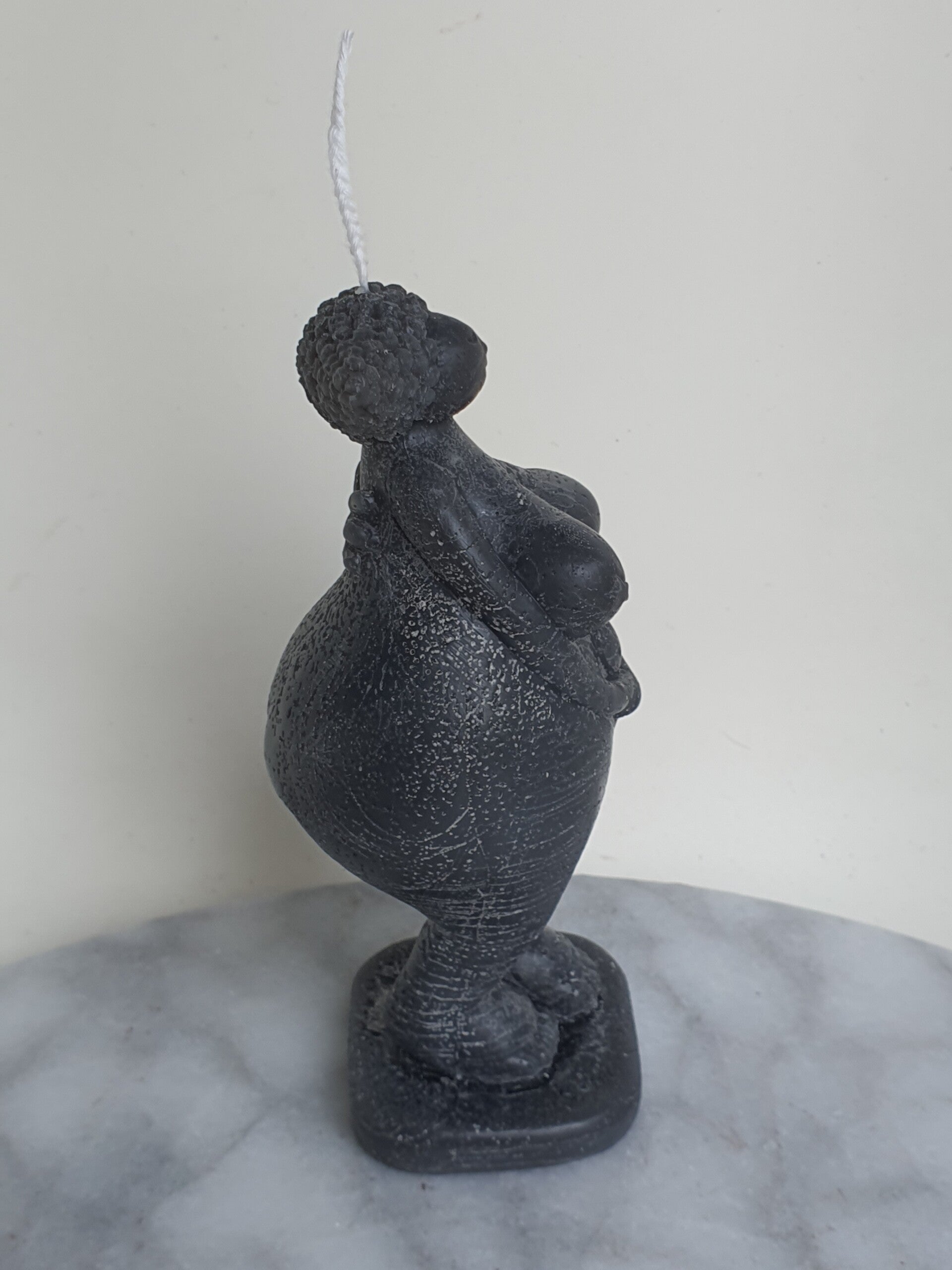 Kaars in de vorm van een beeldje van de oermoeder Gaia. Mooie details zijn de kleine vleugels op haar rug en het hartje in haar armen. Zo verbindt ze het aardse bestaan met het bovennatuurlijke.