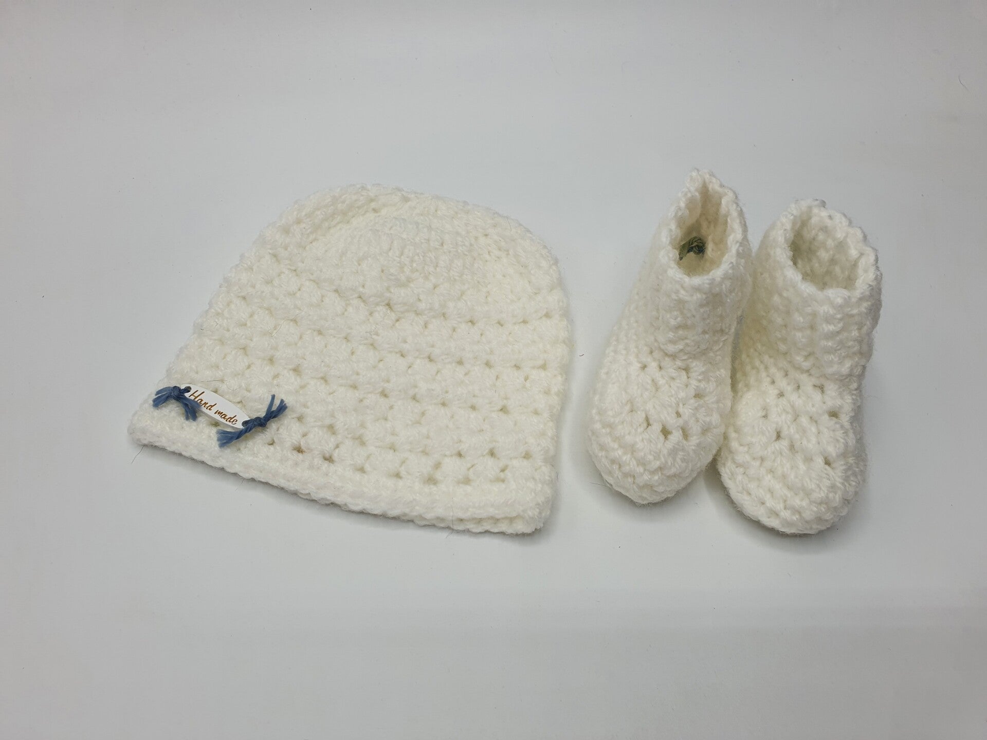 - Materiaal: Het setje is gemaakt van zachte baby wol. De samenstelling daarvan is 80% acryl en 20 % polyamide.