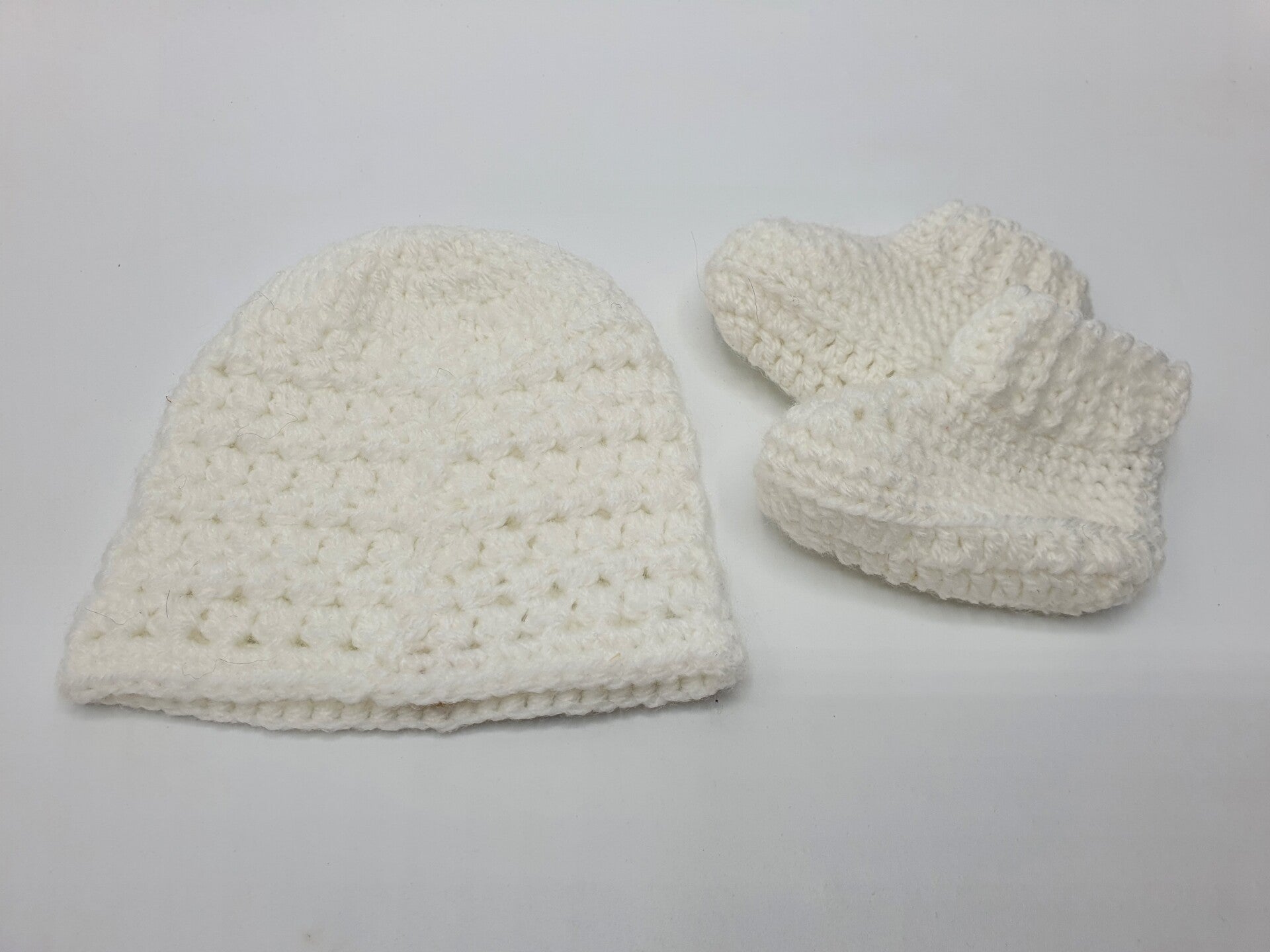 Lieve set van een gehaakt mutsje én slofjes. Dit setje is geschikt voor baby born poppen en andere realistische babypoppen.