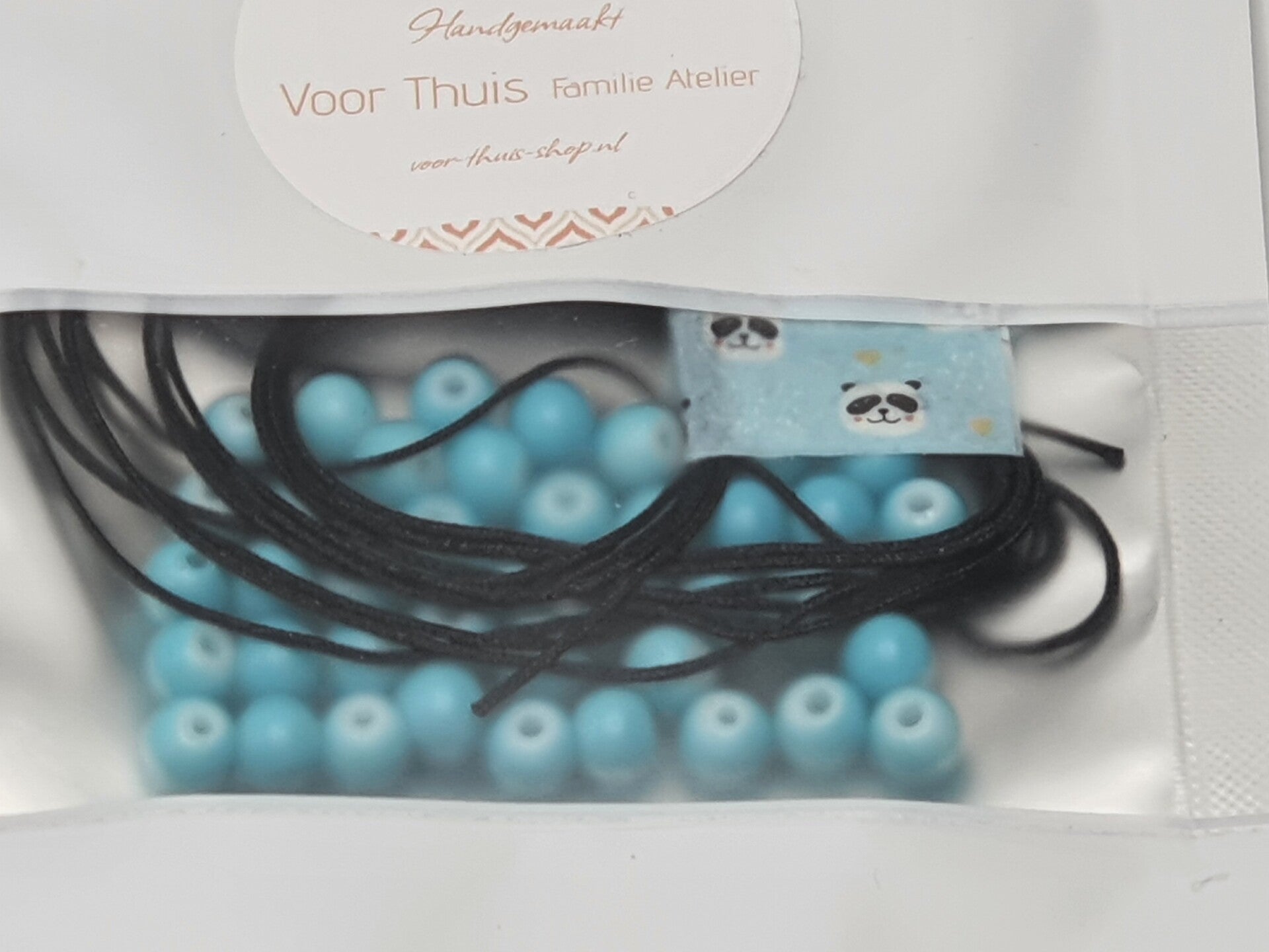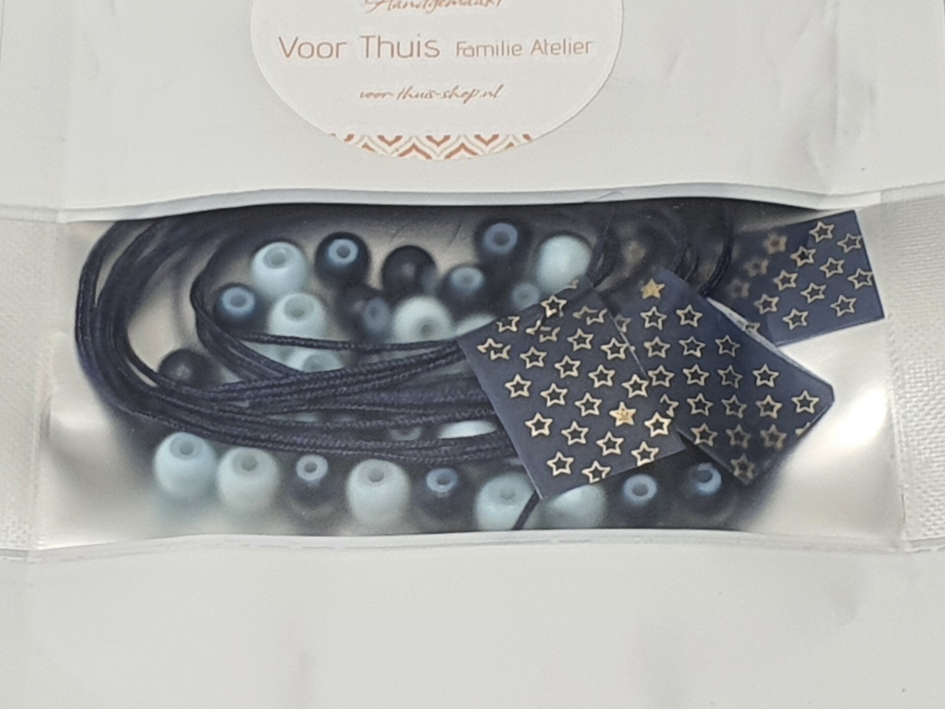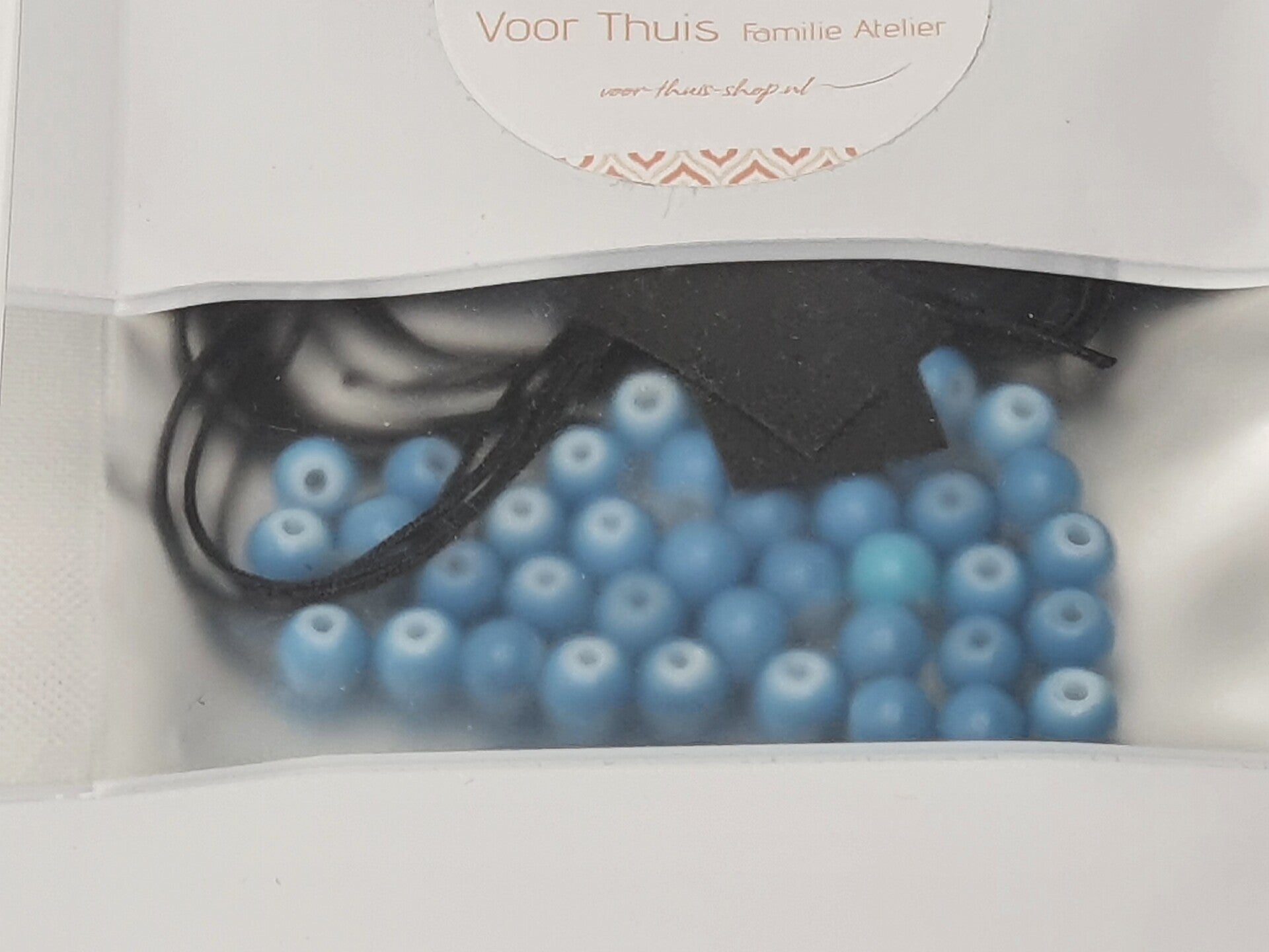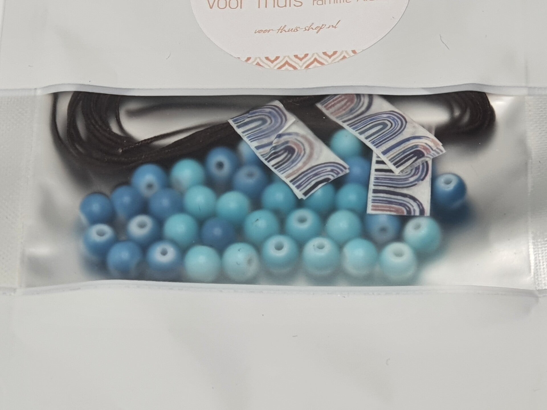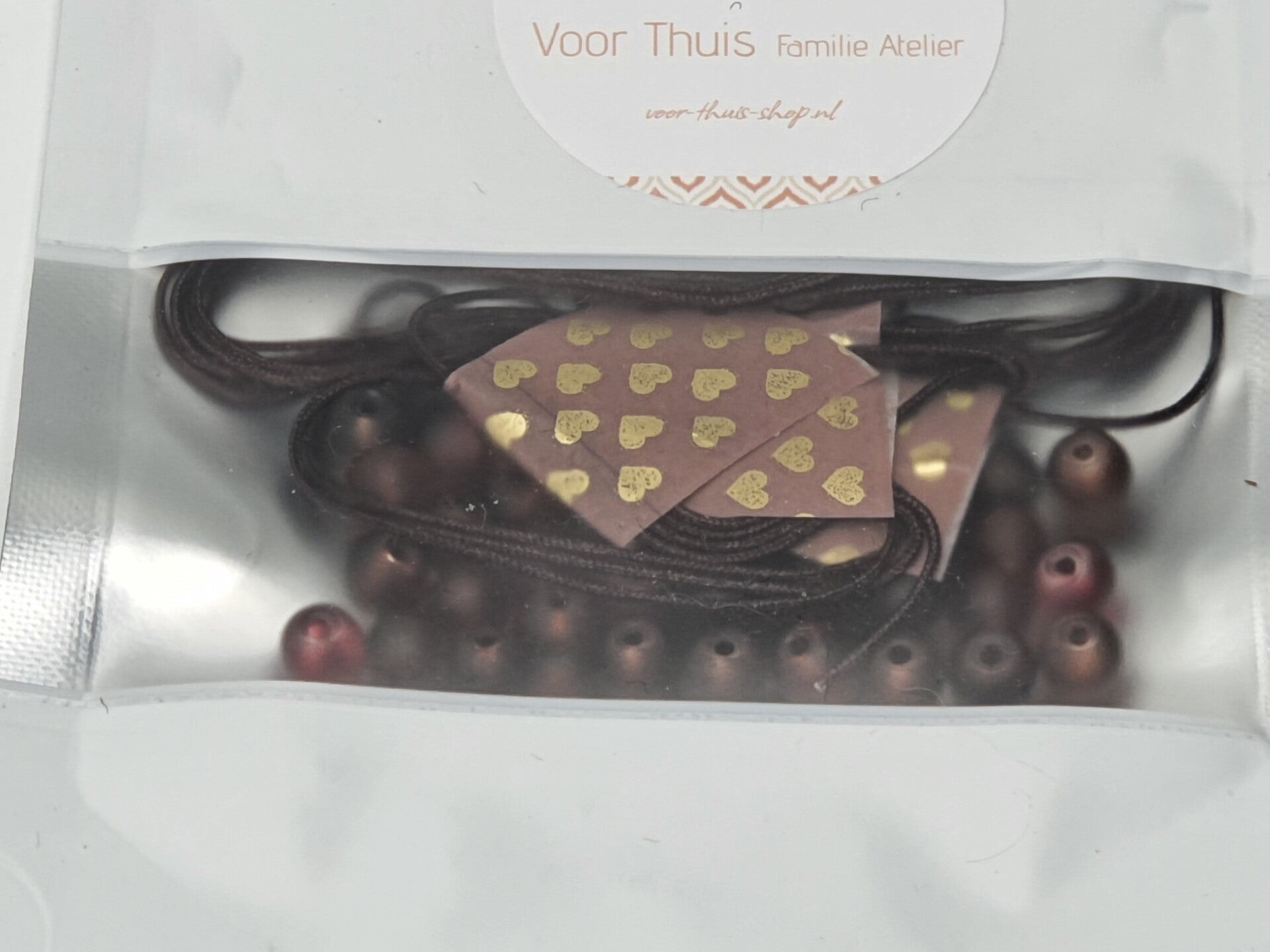 De juiste hoeveelheid kralen - 3 draden die zijn geknipt op de juiste lengte die je nodig hebt - De QR code met uitleg hoe je de armband thuis kunt maken.