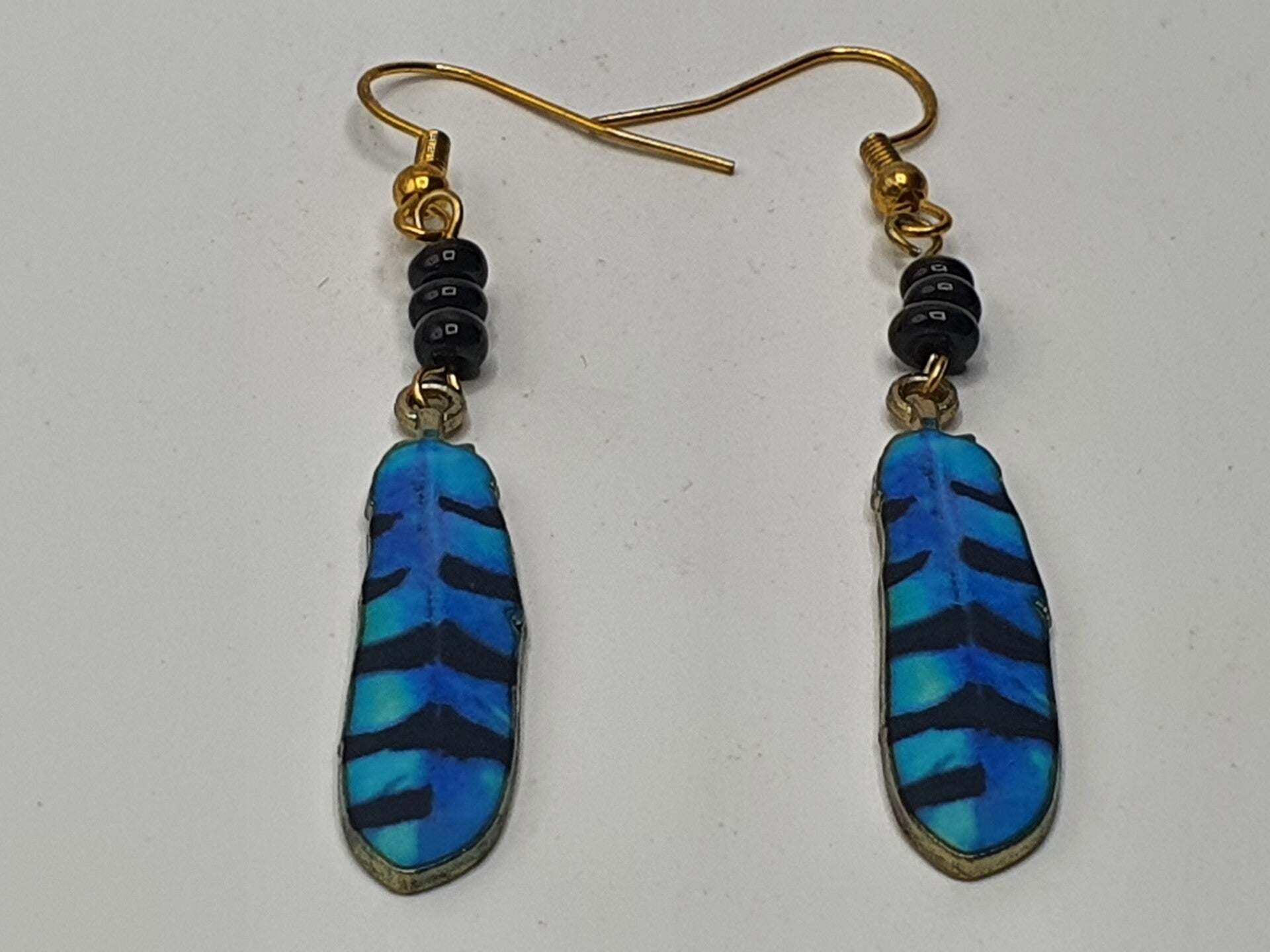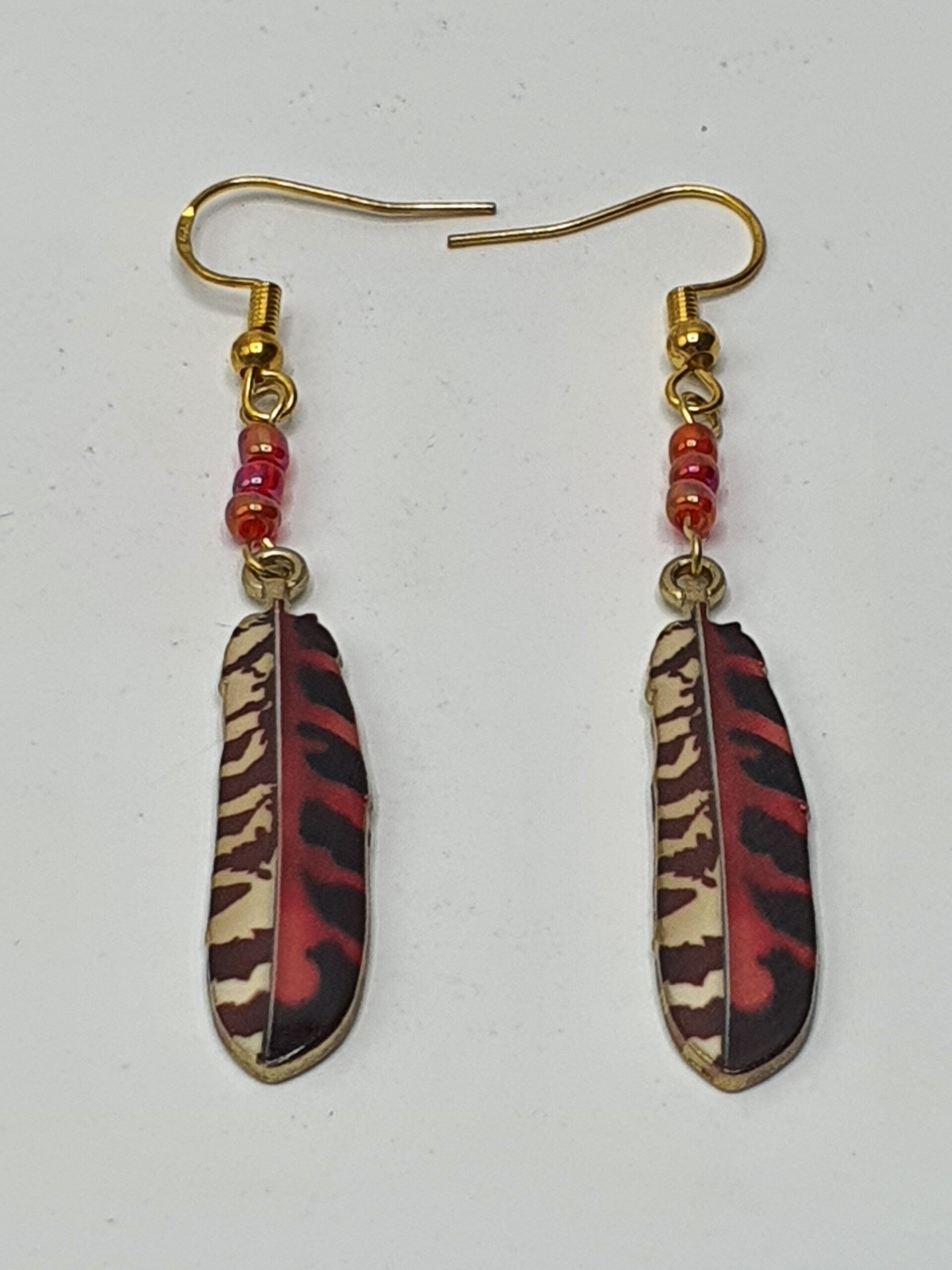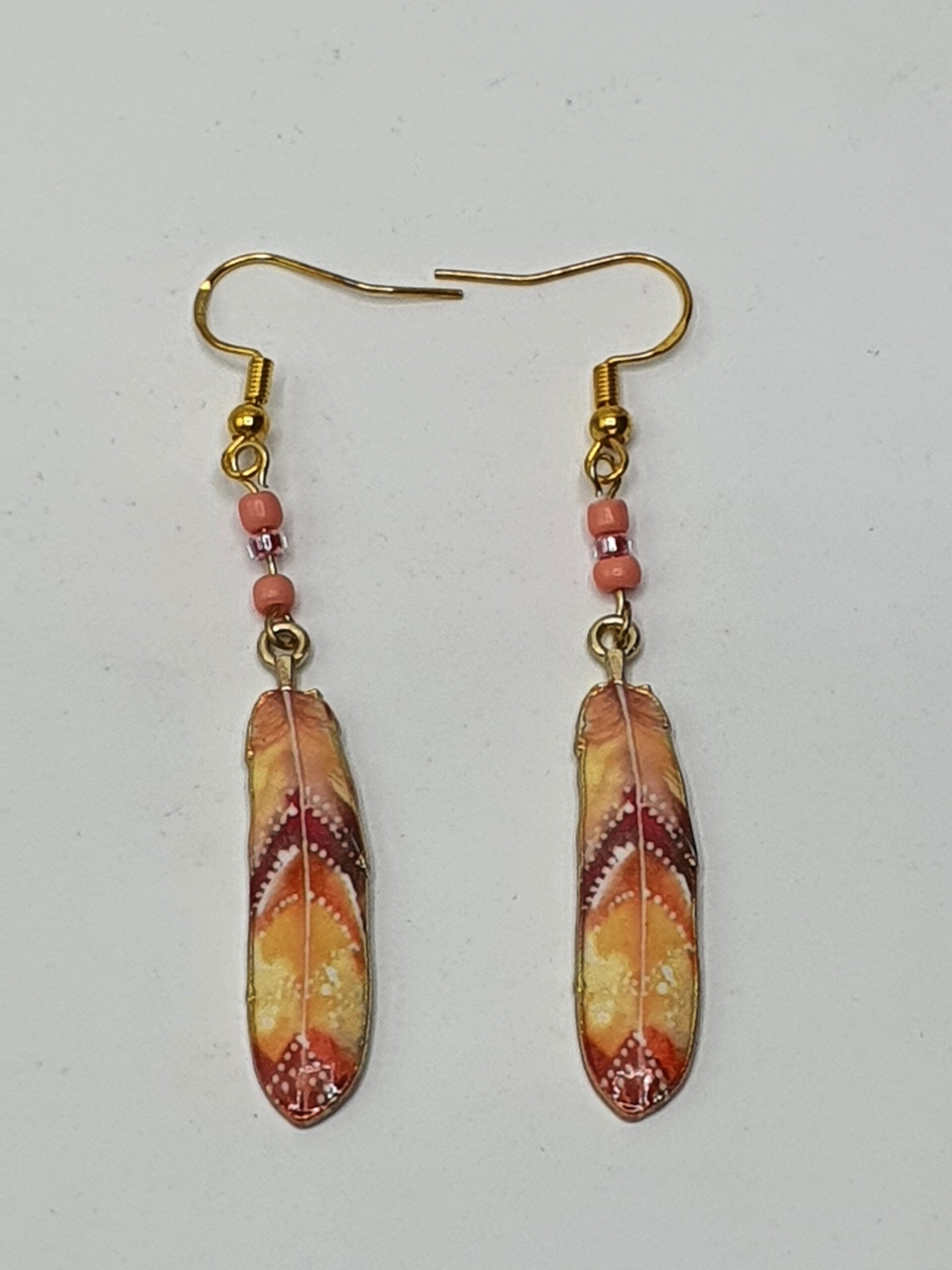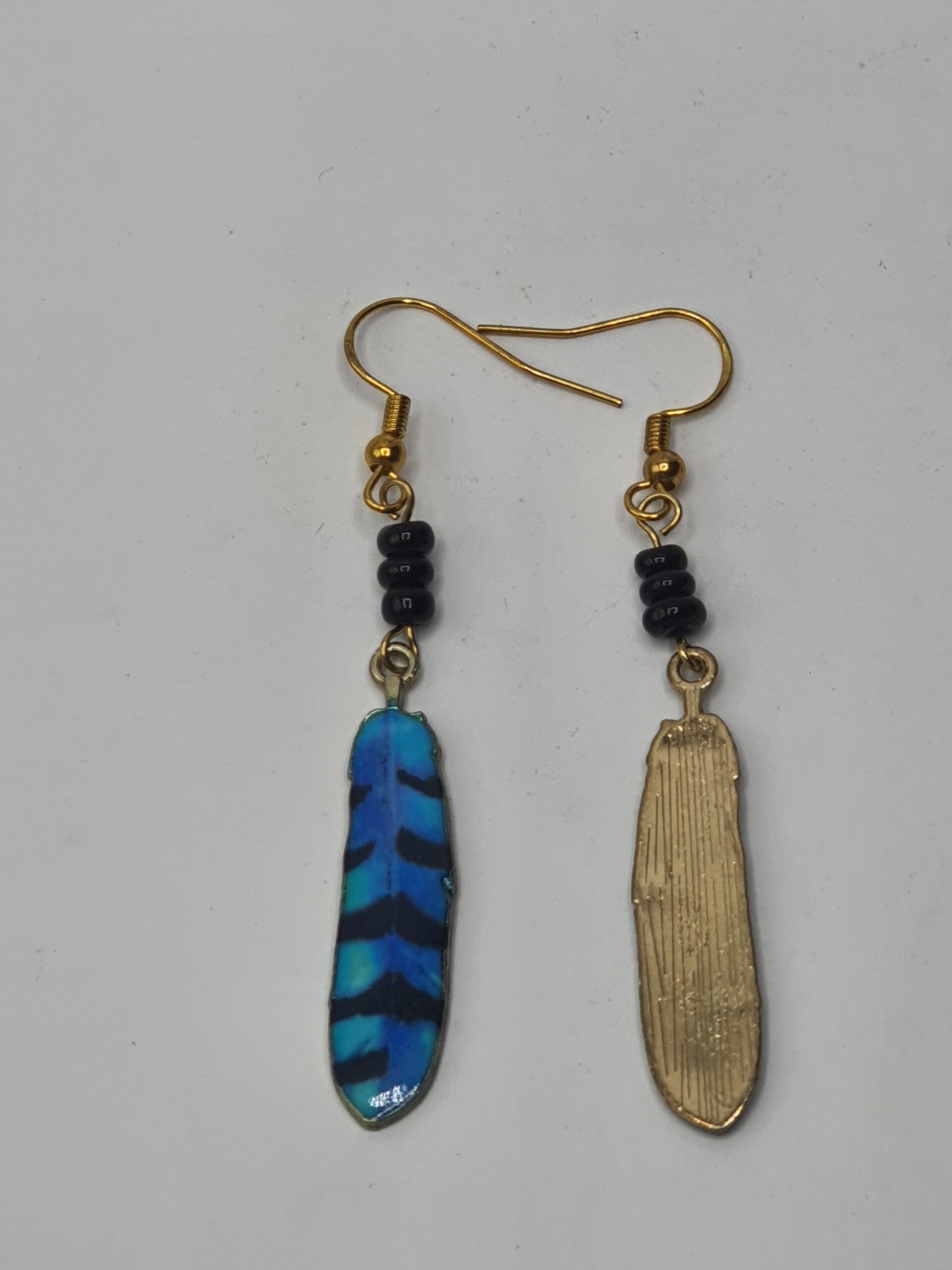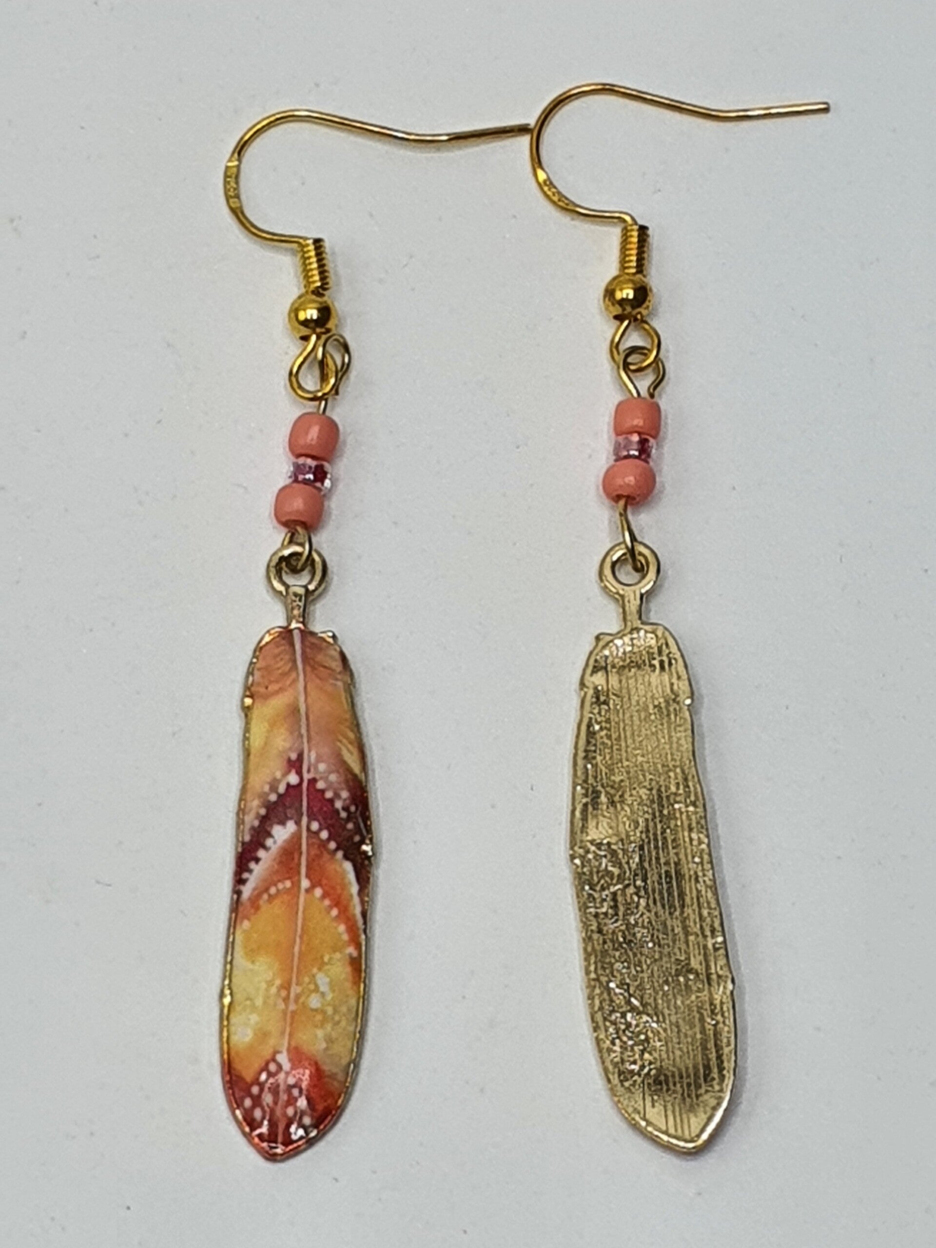 Veren blijven leuk! Nu in de vorm van dit Goudkleurige oorbellen paar met verschillende kleuren en patronen.