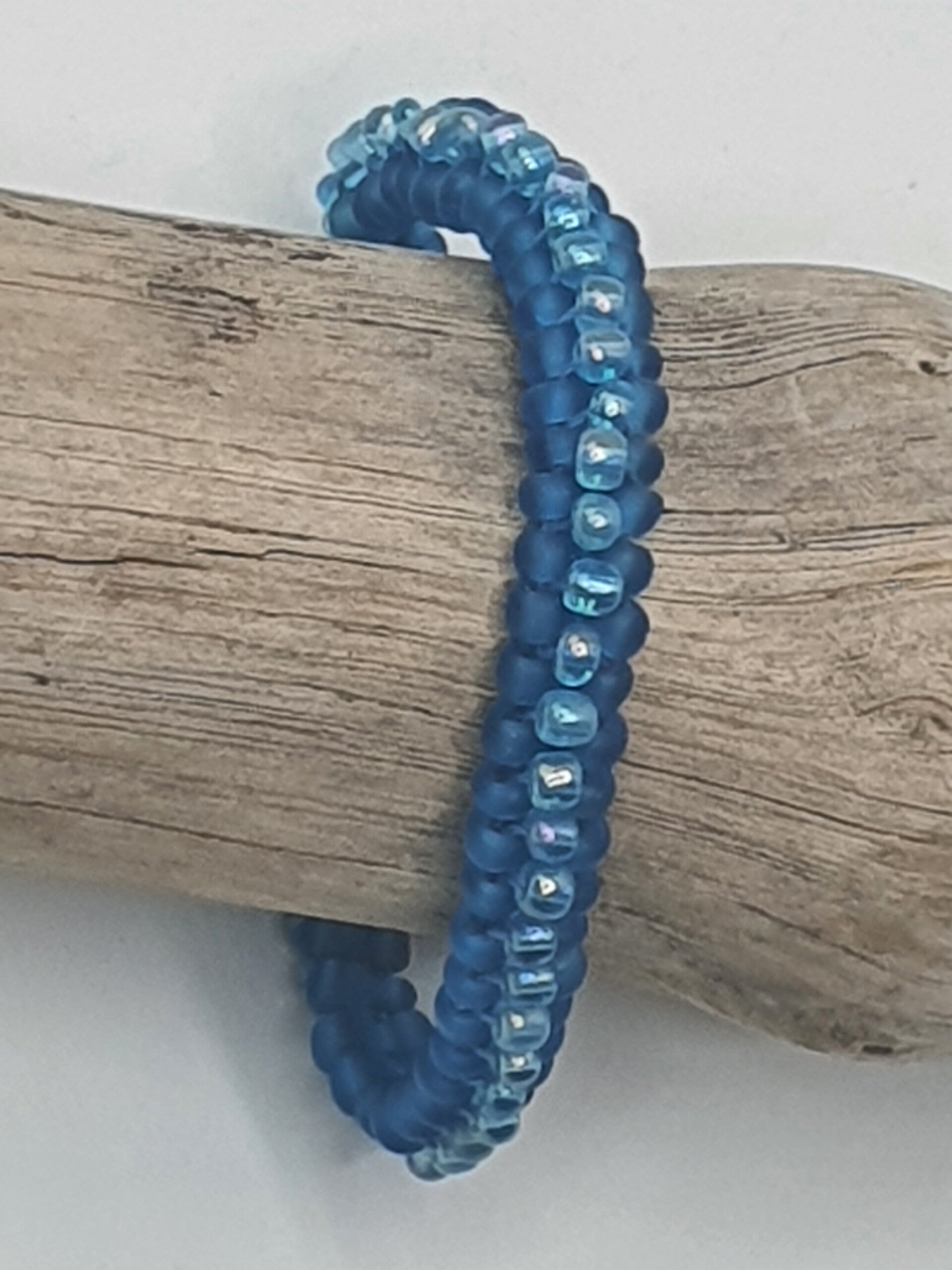 - Eén met matte Blauwe kralen en Lichtblauwe parelmoer kralen