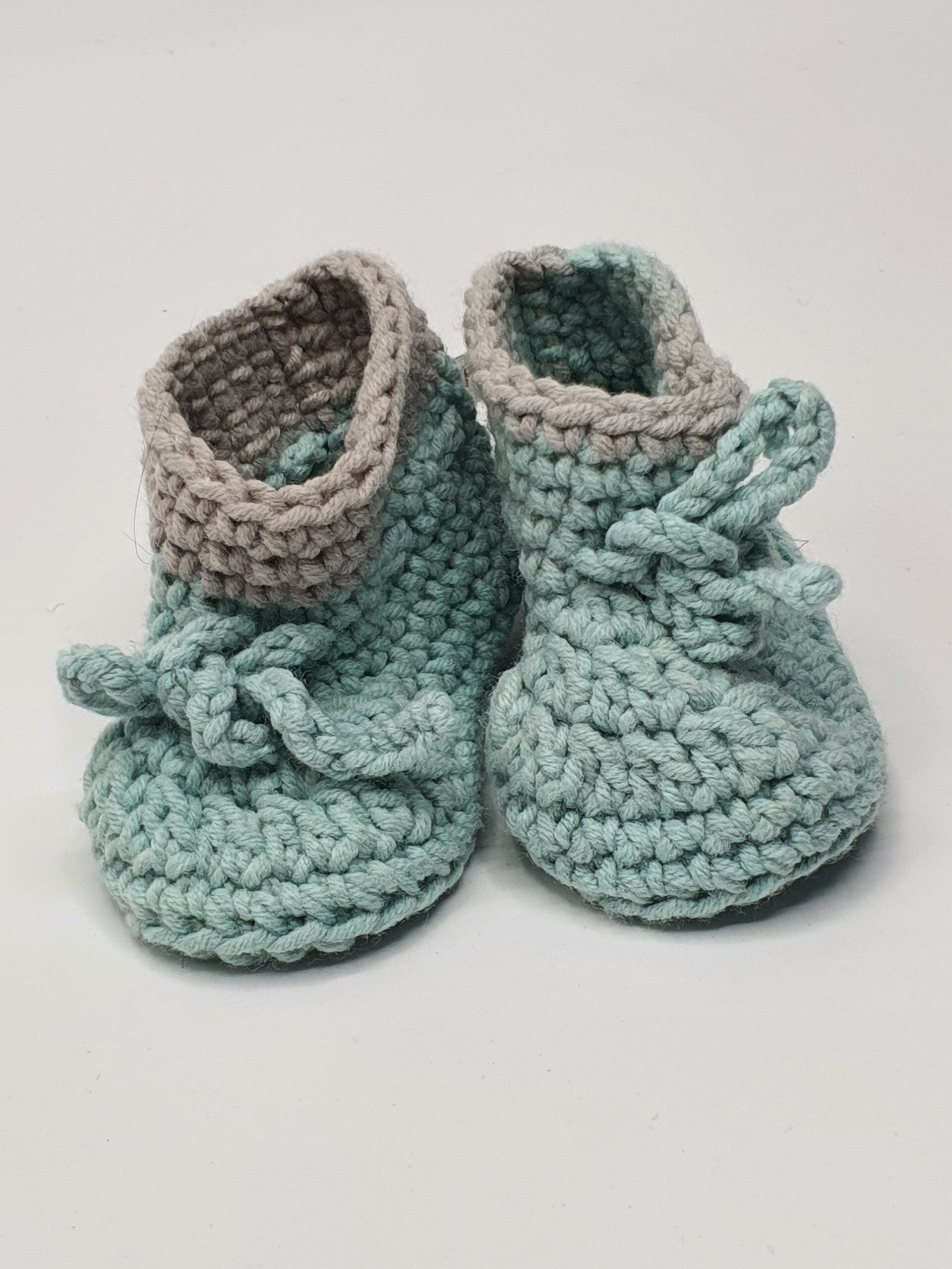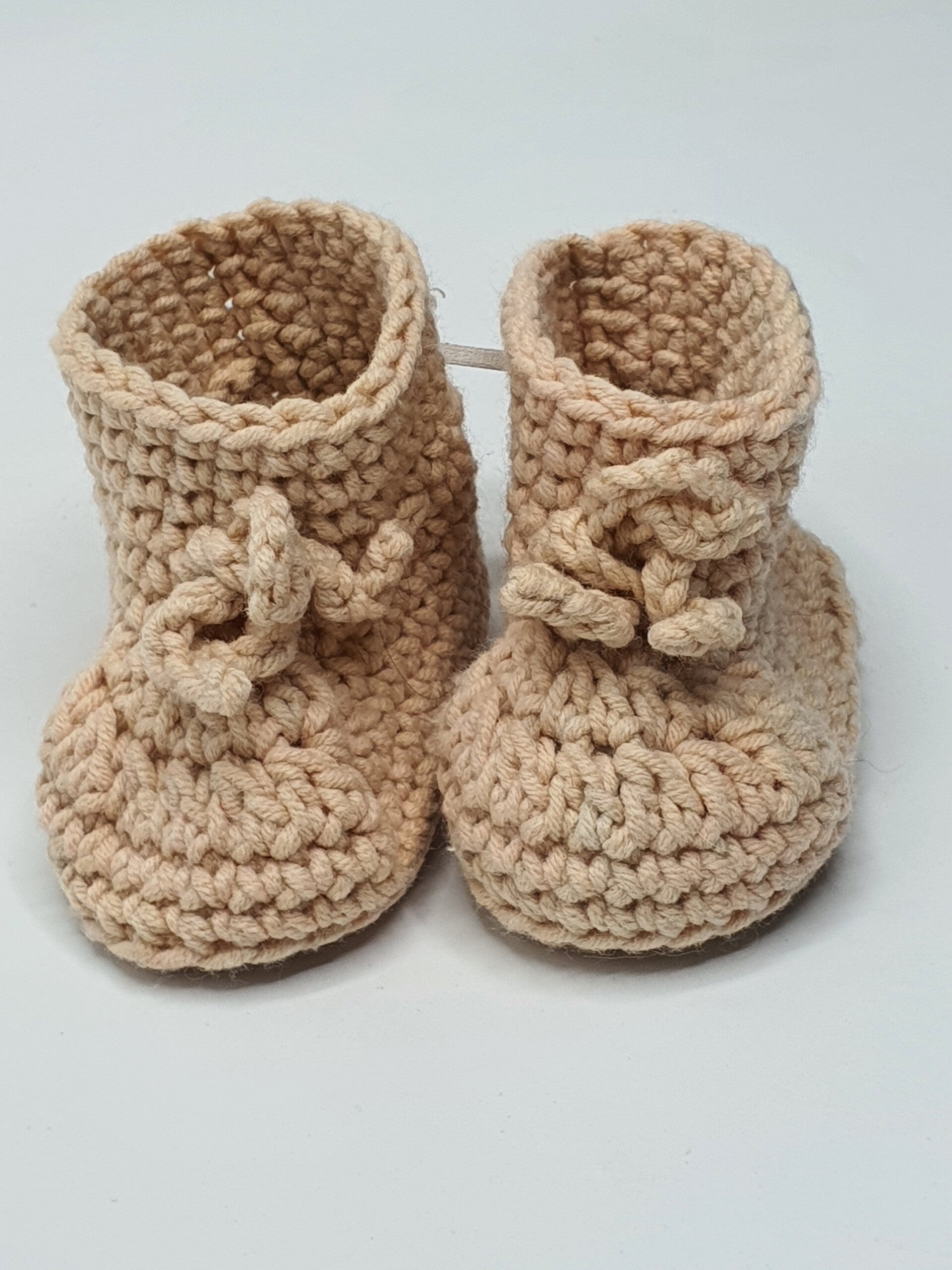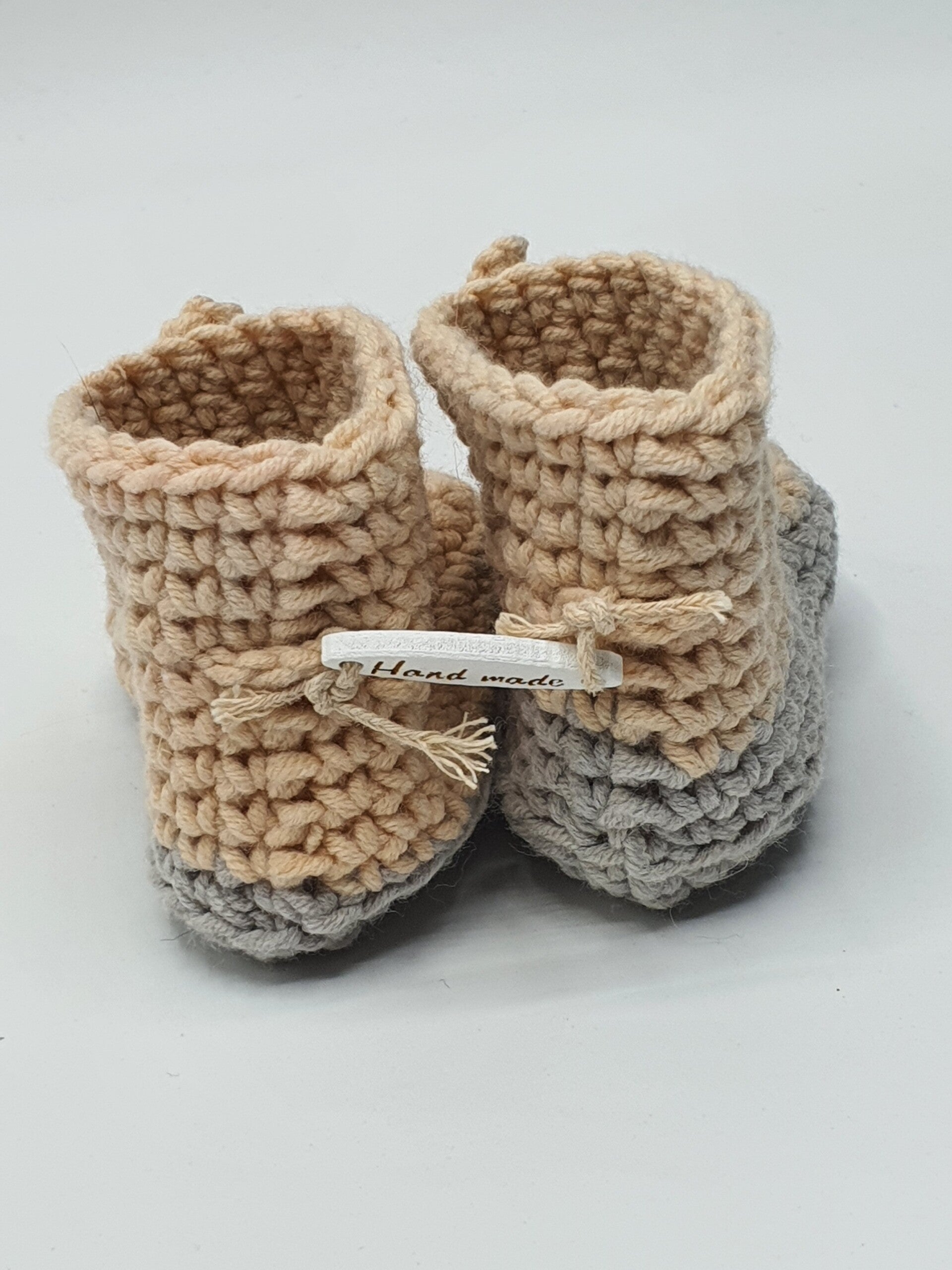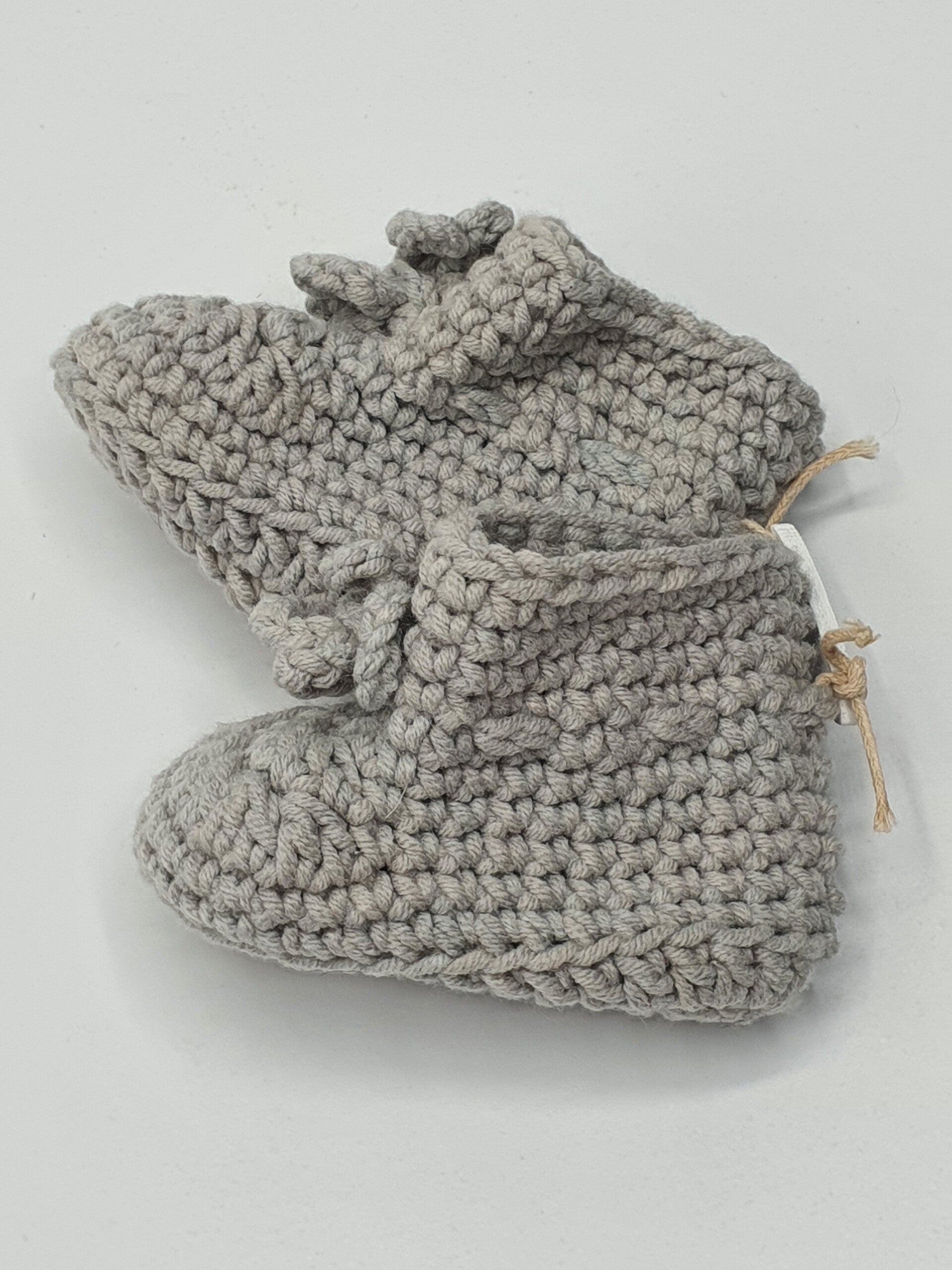 Schattige slofjes van melkgaren in verschillende kleuren en kleurensamenstellingen. Geschikt voor baby born poppen en andere realistische babypoppen. De slofjes sluiten met een strikje.