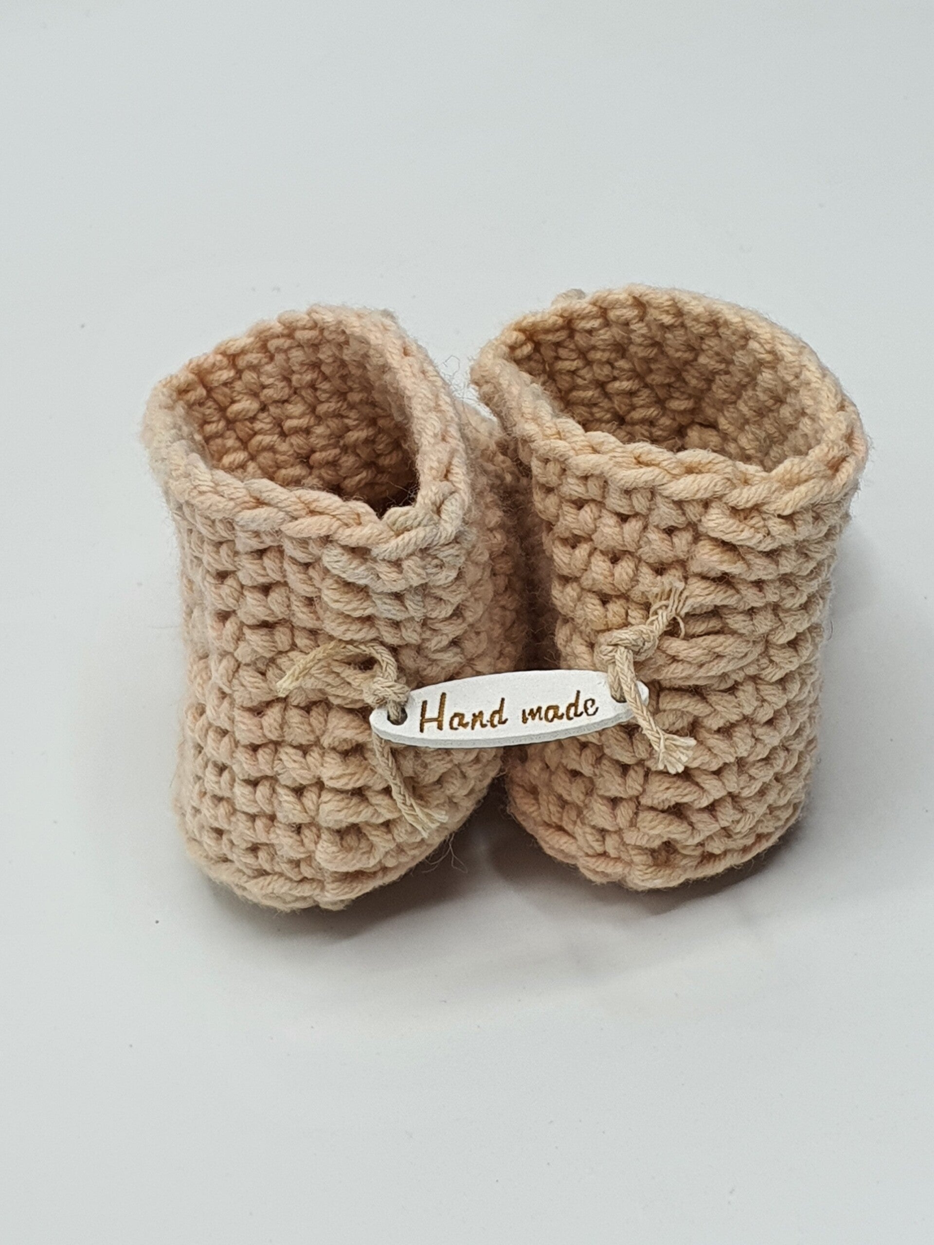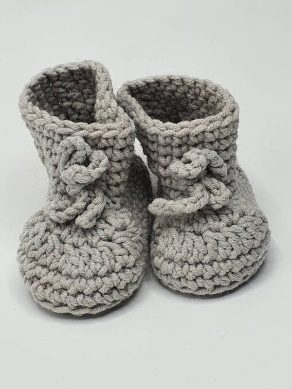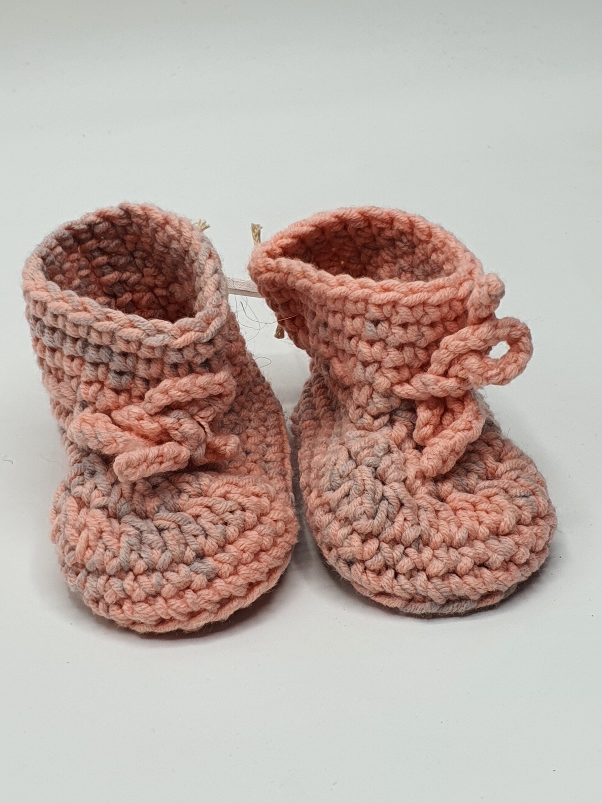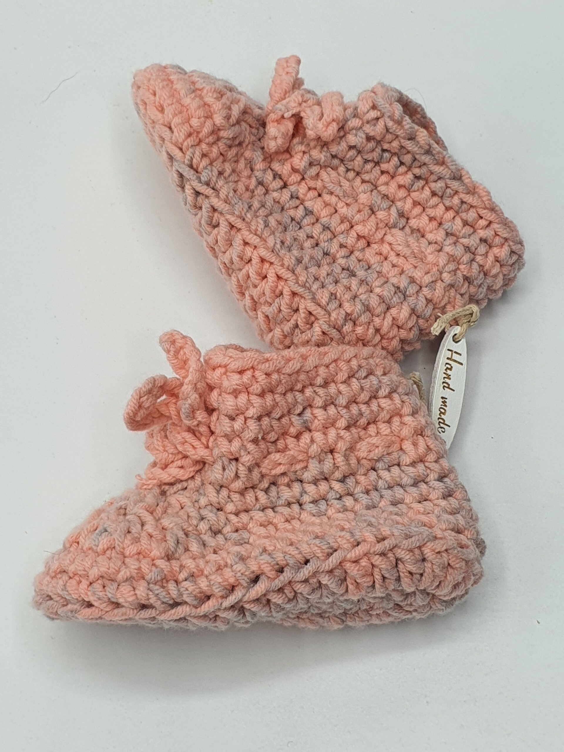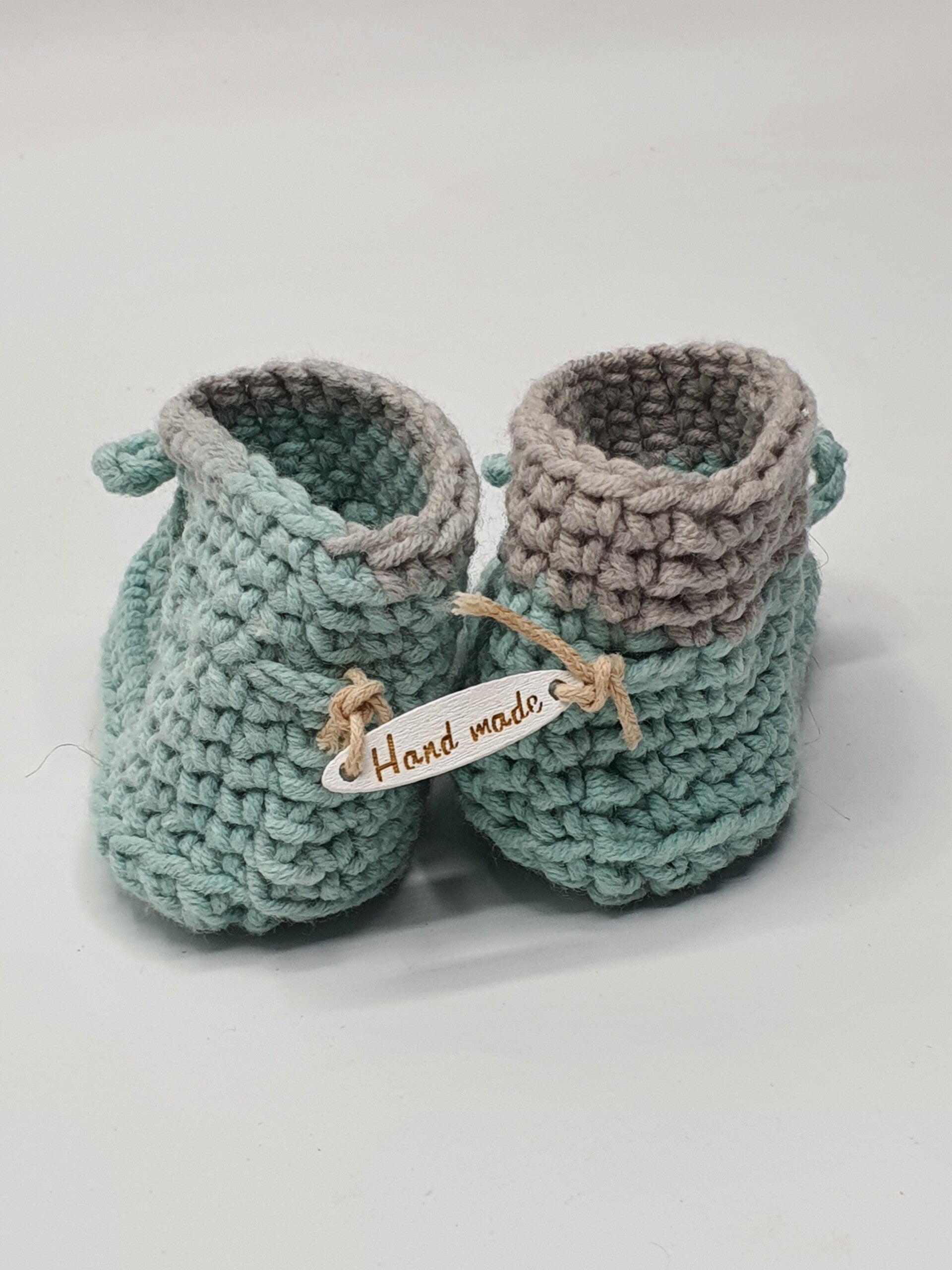 Schattige slofjes van melkgaren in verschillende kleuren en kleurensamenstellingen. Geschikt voor baby born poppen en andere realistische babypoppen. De slofjes sluiten met een strikje.