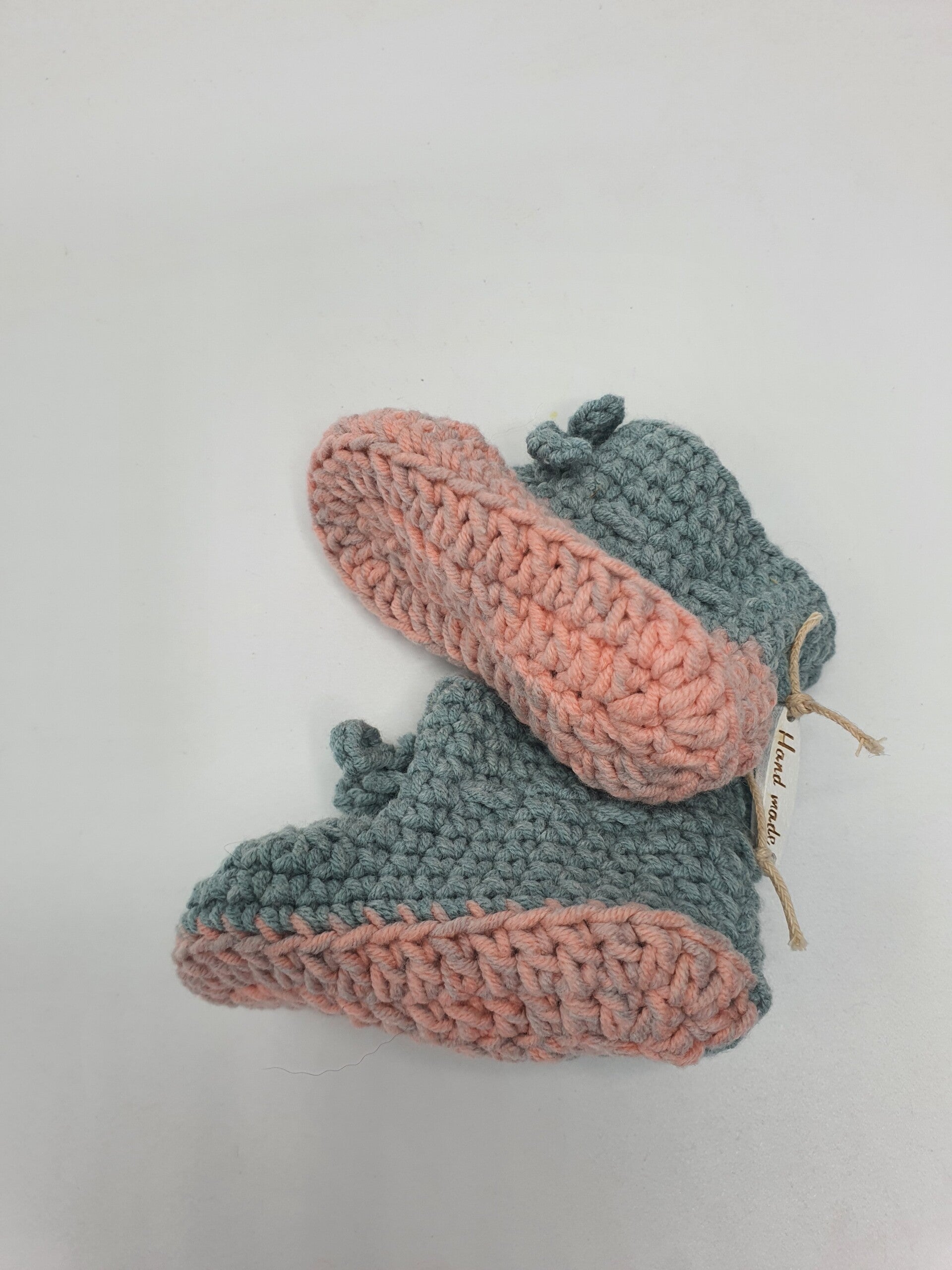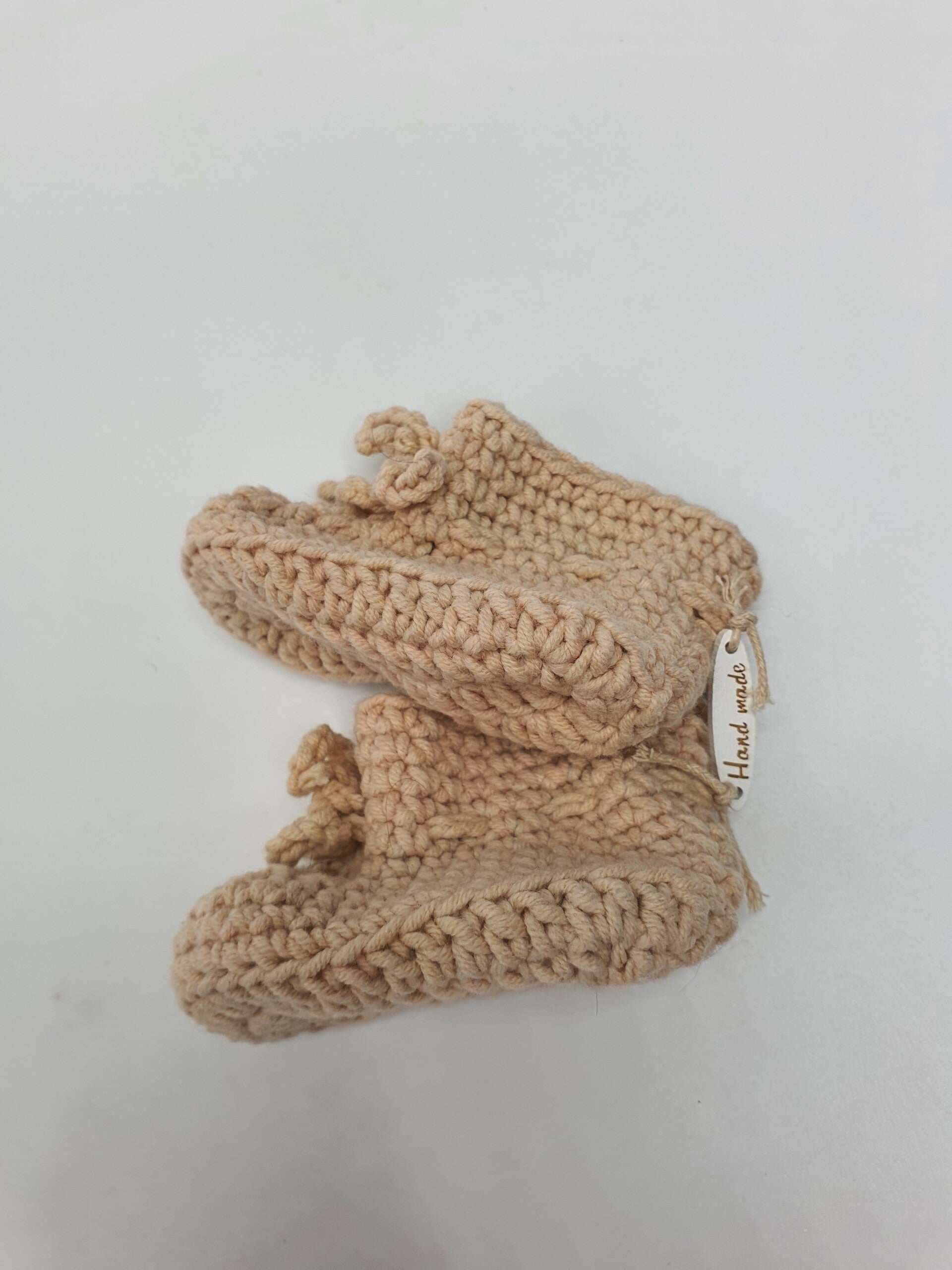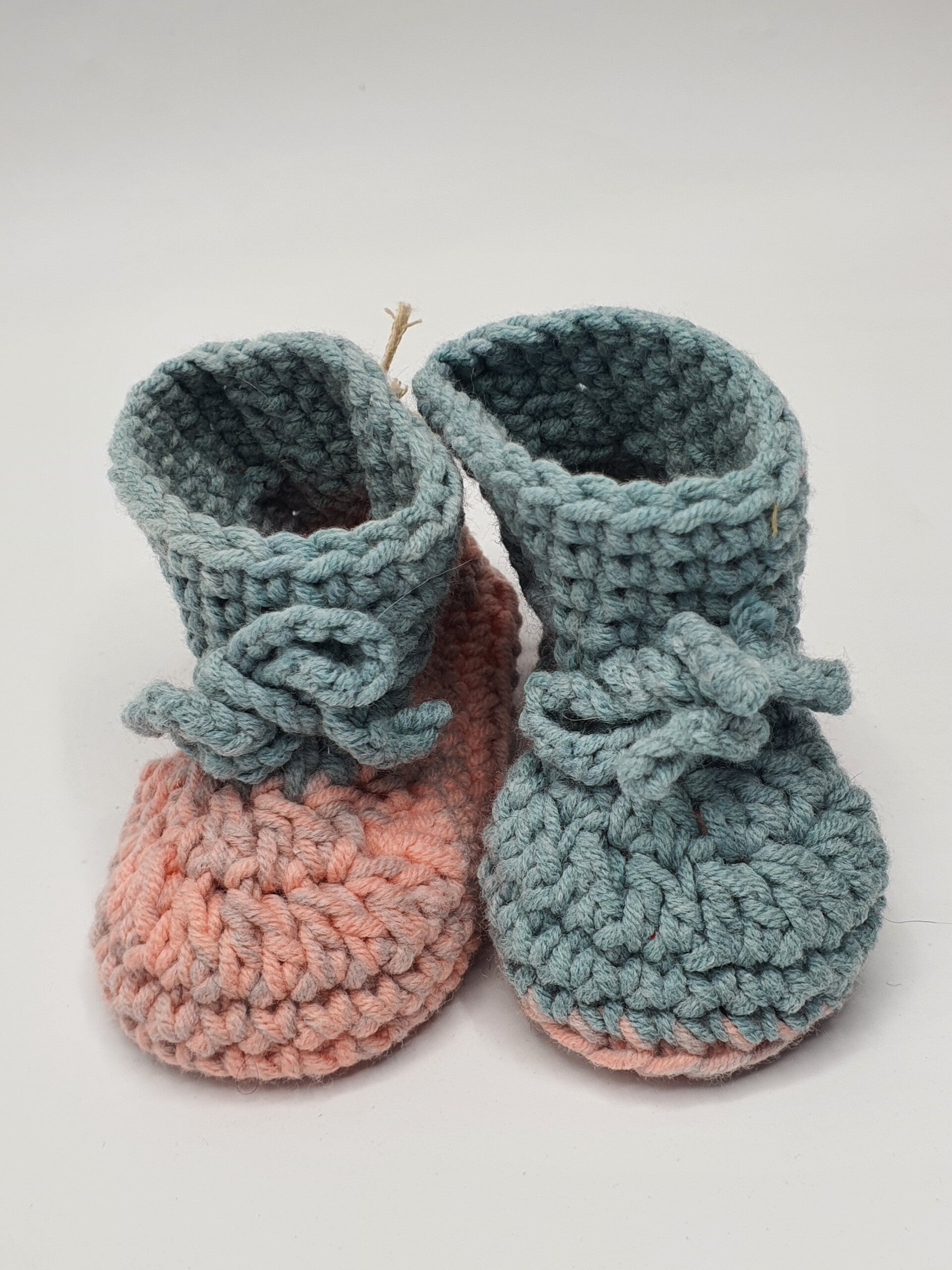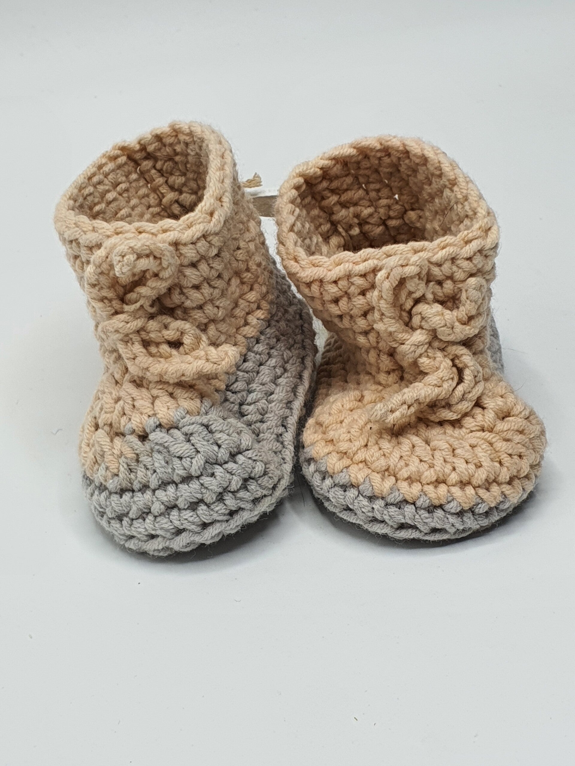 Schattige slofjes van melkgaren in verschillende kleuren en kleurensamenstellingen. Geschikt voor baby born poppen en andere realistische babypoppen. De slofjes sluiten met een strikje.