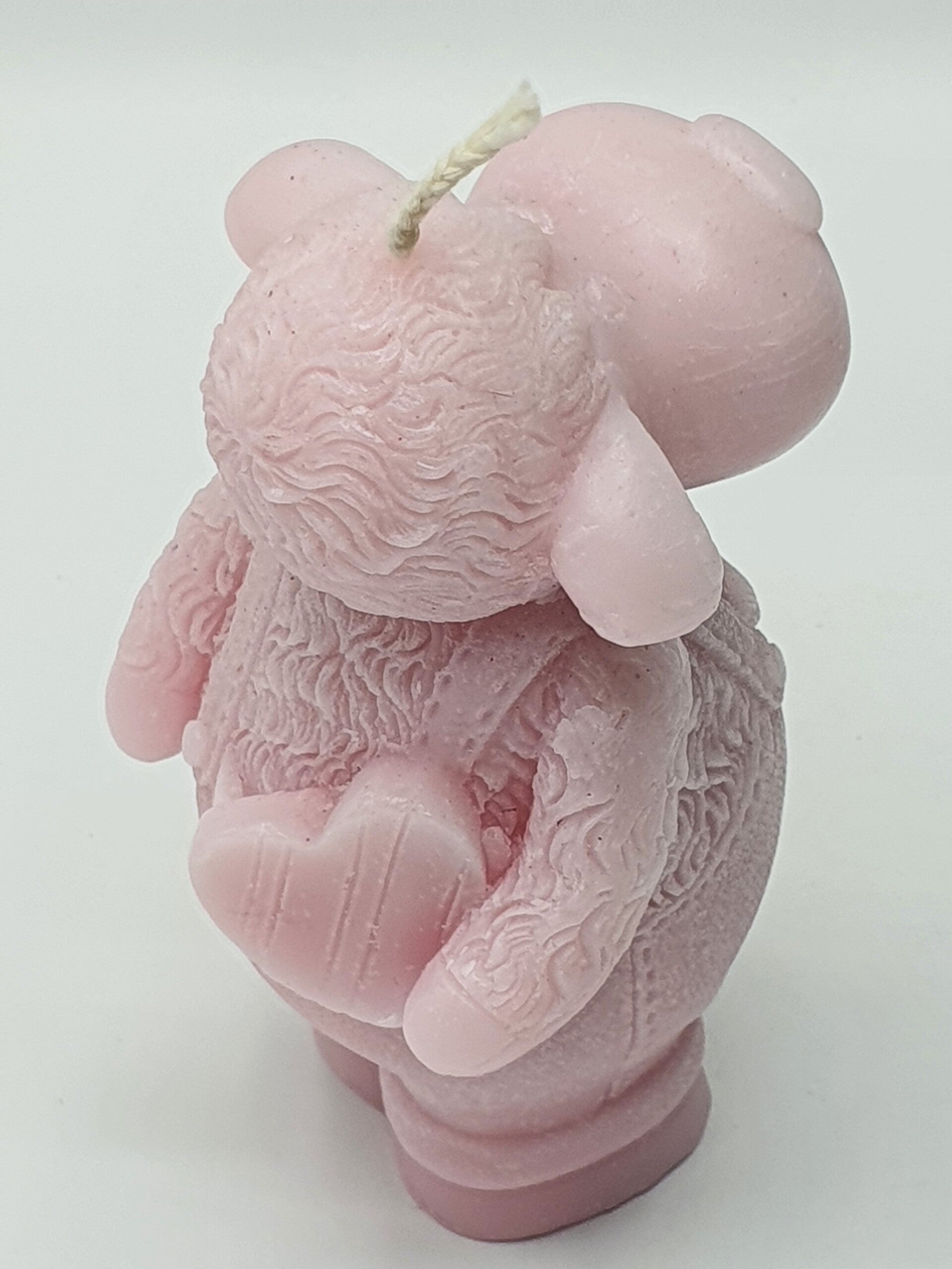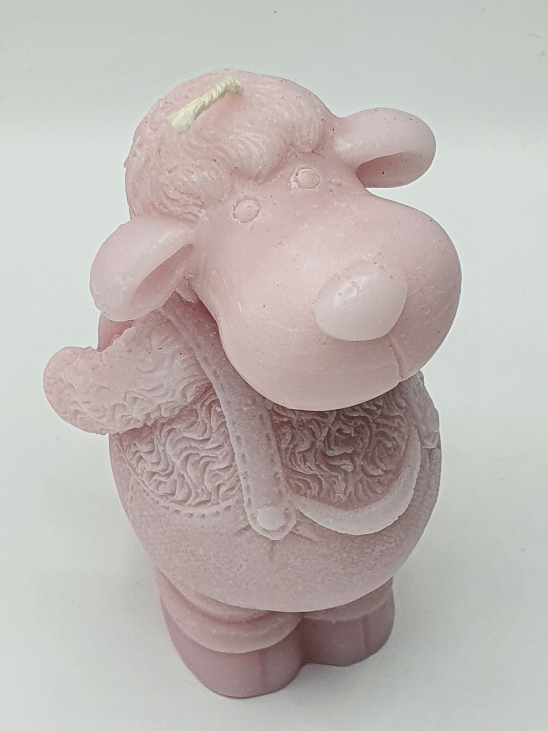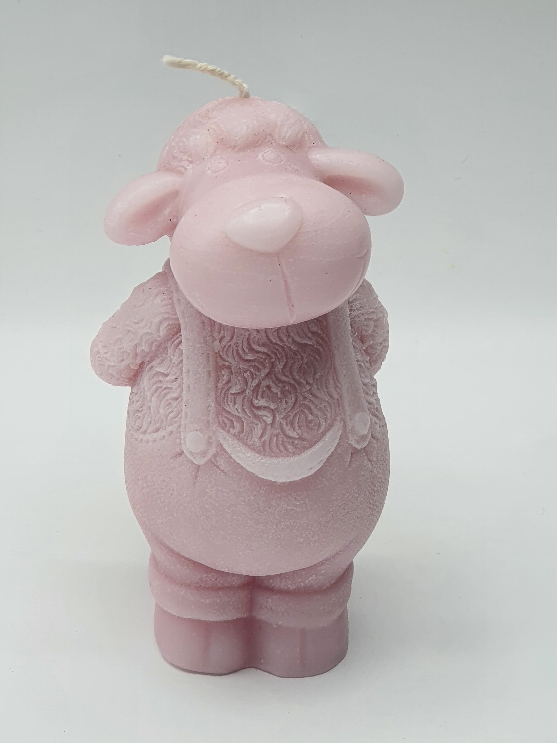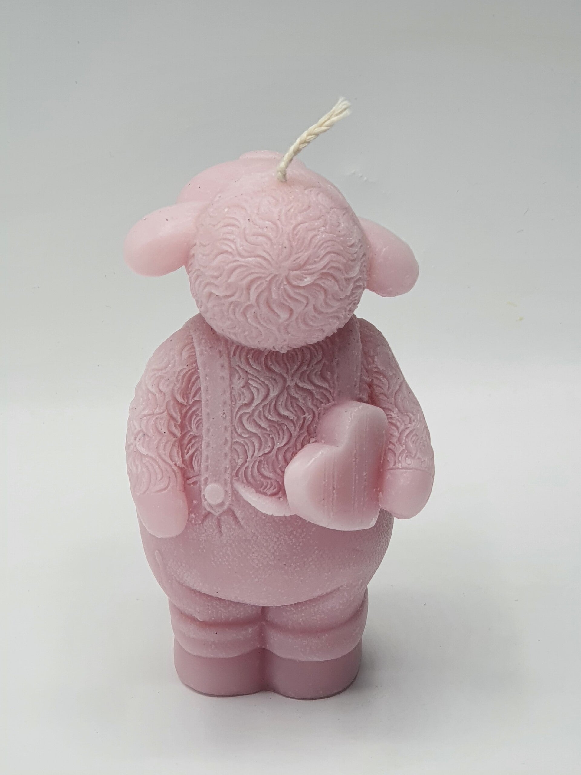 Een vertederende kaars van een lief verlegen jongens schaap. Hij heeft een hartje achter zijn rug en kijkt omhoog.