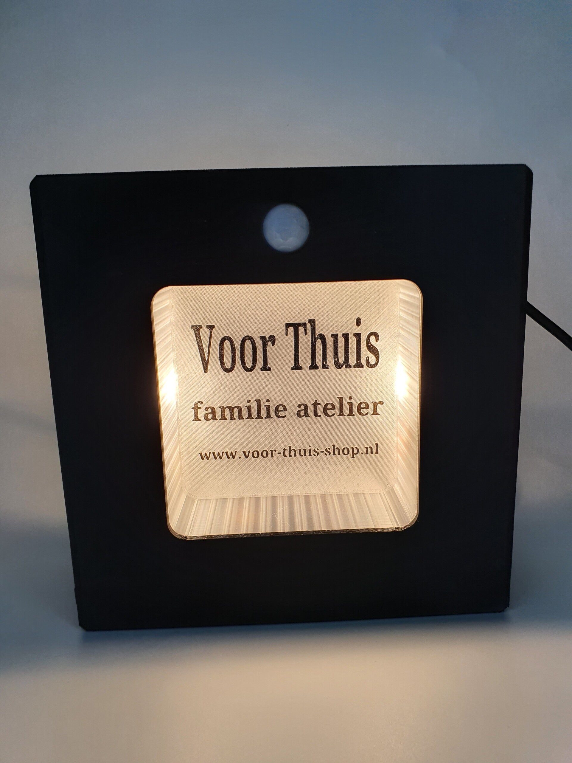 Vul hier je naam of namen in. Probeer rekening te houden met de beschikbare ruimte. (Kijk bijvoorbeeld naar de lamp met de naam van ons bedrijf. Wanneer de tekst te lang is voor het frame nemen we contact met je op.)