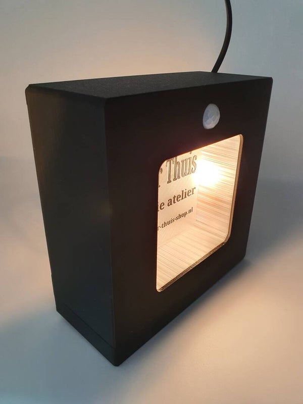 Bovenin bevindt zich een bewegingssensor waardoor de lamp niet de hele nacht blijft branden, maar wel zijn werk doet wanneer nodig.