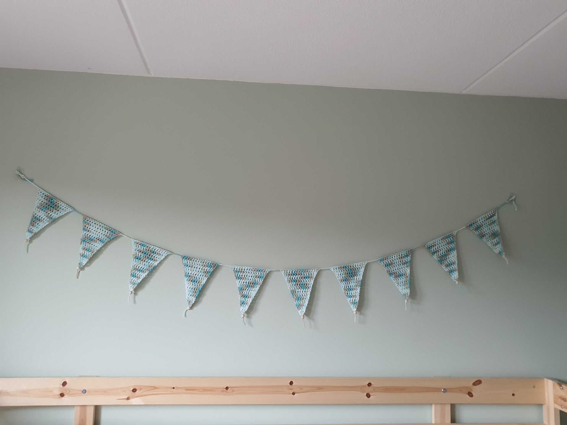 Zoek je een leuke vlaggenslinger of vlaggenlijn voor een baby- of kinderkamer? Hier vind je gehaakte vlaggen met mooie zachte en vrolijke kleuren. Onze gehaakte vlaggen zijn natuurlijk niet alleen voor de kinderkamer, maar ook voor iedereen die handwerk en unieke decoraties waardeert. De kleurrijke uitstraling van onze vlaggen maakt elk moment bijzonder. Laat je inspireren en vind de vlag die perfect bij jou past.