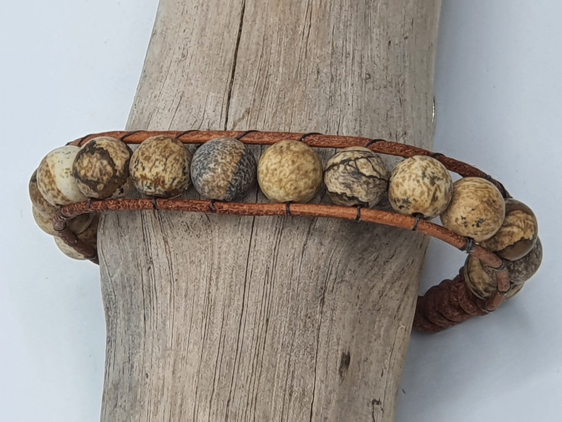 Wij gebruiken verschillende natuurstenen en halfedelstenen, vaak gecombineerd met leer of waxdraad; elk hebben ze hun eigen verhaal door de prachtige kleurnuances.